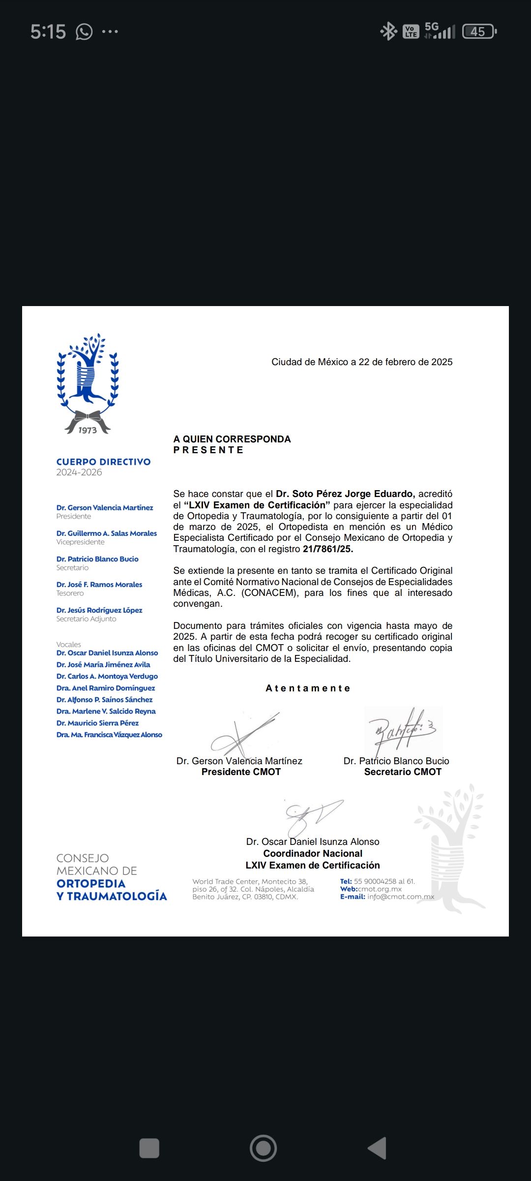 Hola Soy Jorge Soto, Médico cirujano egresado de la Universidad Veracruzana con especialidad en traumatología y ortopedia avalado por la Benemérita Universidad Autónoma de Puebla certificado por el consejo Mexicano de ortopedia y traumatología