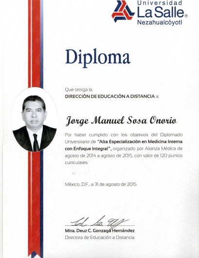 42 años de experiencia. Diplomado en Medicina Interna Diplomado en Diabetes Diplomado en Obesidad Diploma en Nutrición