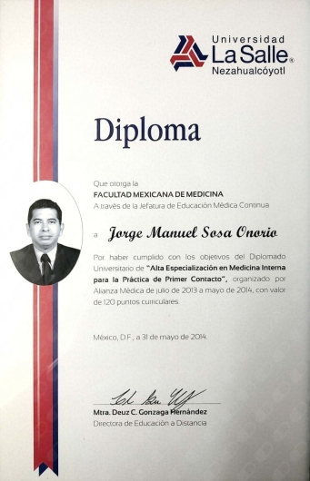 Me explico mi padecimiento y el diagnóstico con el medicamento adecuado• DR. JORGE MANUEL SOSA ONORIO • Primera visita Medicina General •