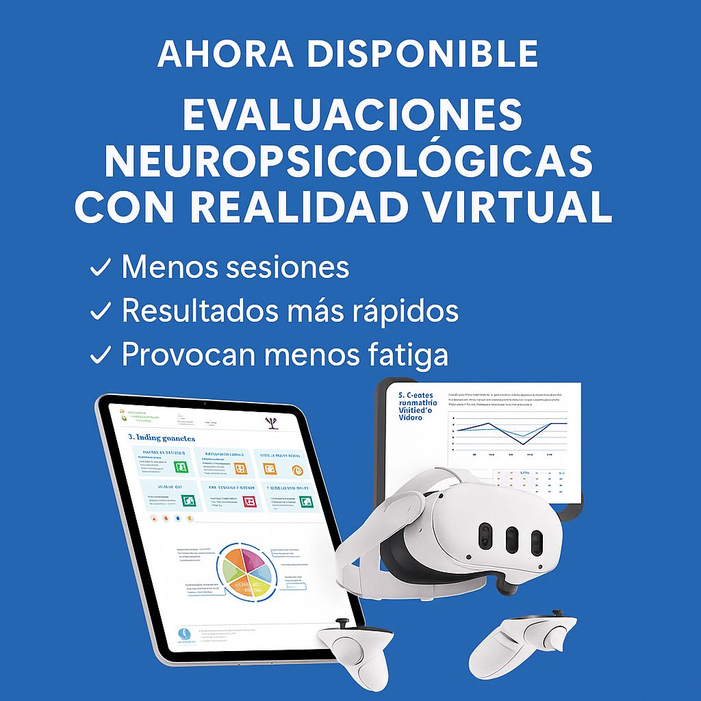La evaluación neuropsicológica con realidad virtual es un nuevo servicio que incluye una entrevista clínica, una sesión de evaluación con realidad virtual y una entrega de resultados con reporte neuropsicológico. Al usar entornos virtuales inmersivos, se evalúan la atención y las funciones ejecutivas de forma más dinámica y atractiva, reduciendo la fatiga. Con menos sesiones, el proceso es más ágil sin comprometer la calidad de los resultados.