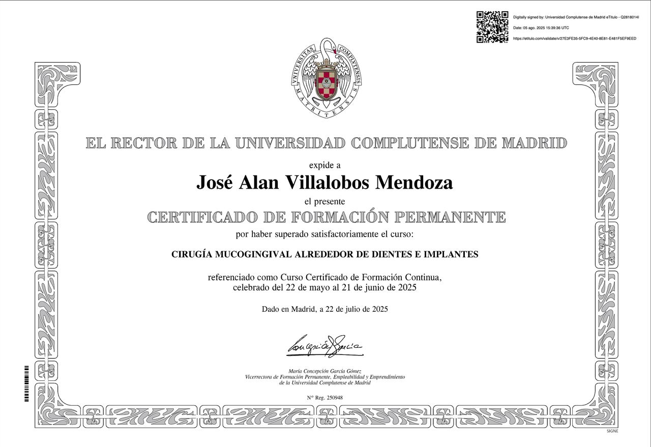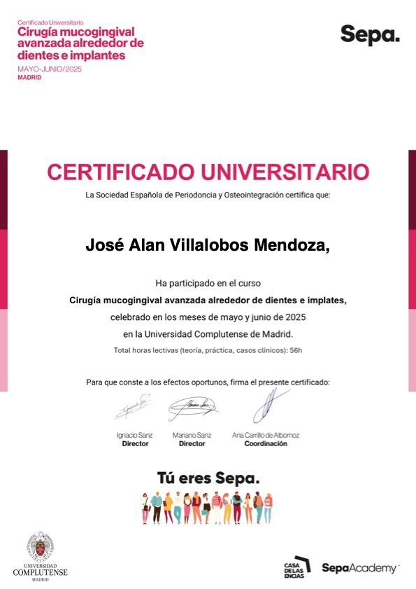 Soy cirujano dentista con Maestría en Periodoncia, he perfeccionado mi práctica con cursos especializados en México, Estados Unidos, Chile y España. Esto me permite ofrecerte tratamientos modernos, seguros y de alta especialización.