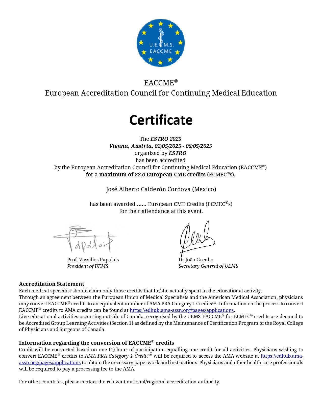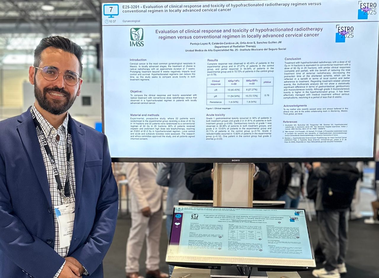 Este año, durante el congreso internacional de la Sociedad Europea de Radiooncología (ESTRO) que se llevo a cabo en Viena, Austria, tuve la oportunidad de presentar los resultados finales de mi trabajo de investigación en cáncer cervicouterino, donde se propone una nueva dosis para el tratamiento del cáncer de cervix localmente avanzado, con la cual se obtuvieron excelentes resultados en mis pacientes. ¡Sigamos aportando a la ciencia!
