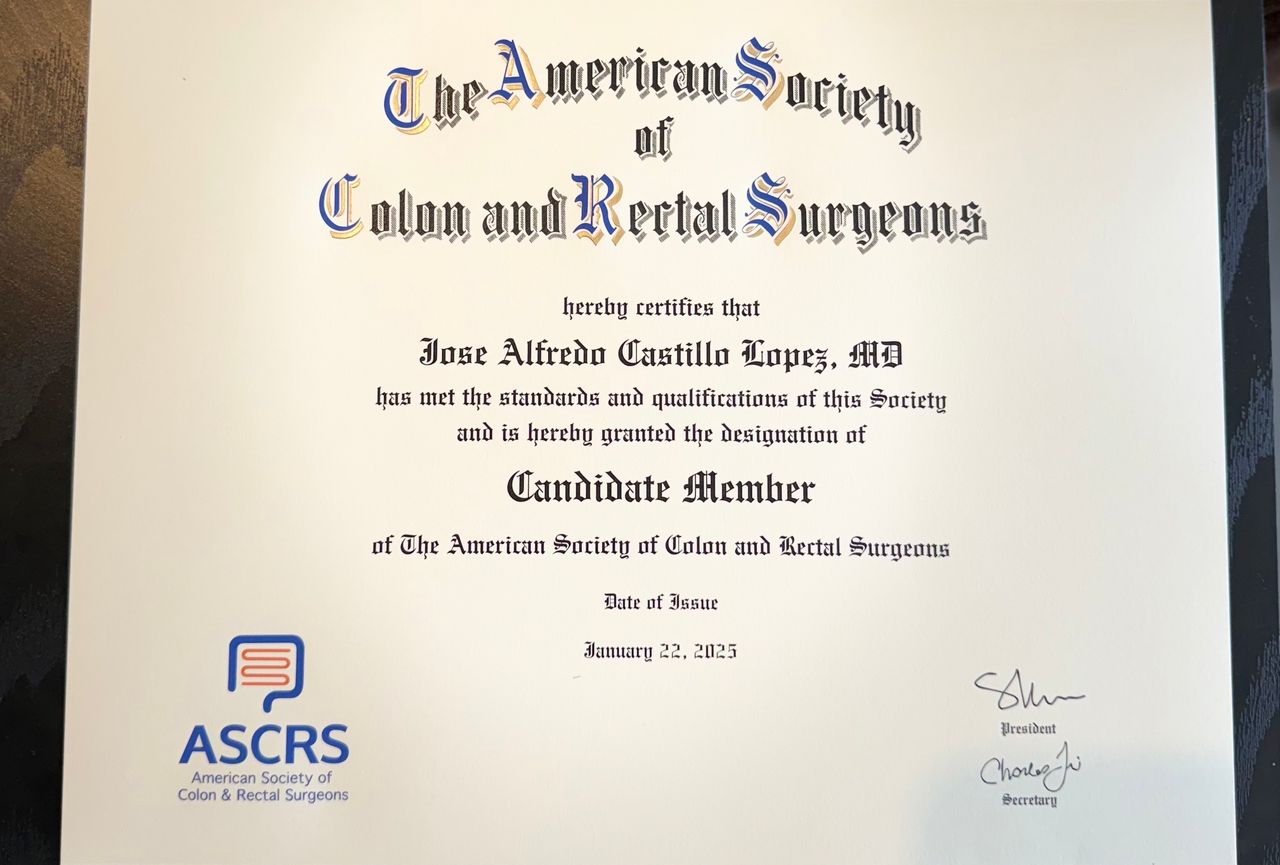 Candidate Member of the American Society of Colon and Rectal Surgeons