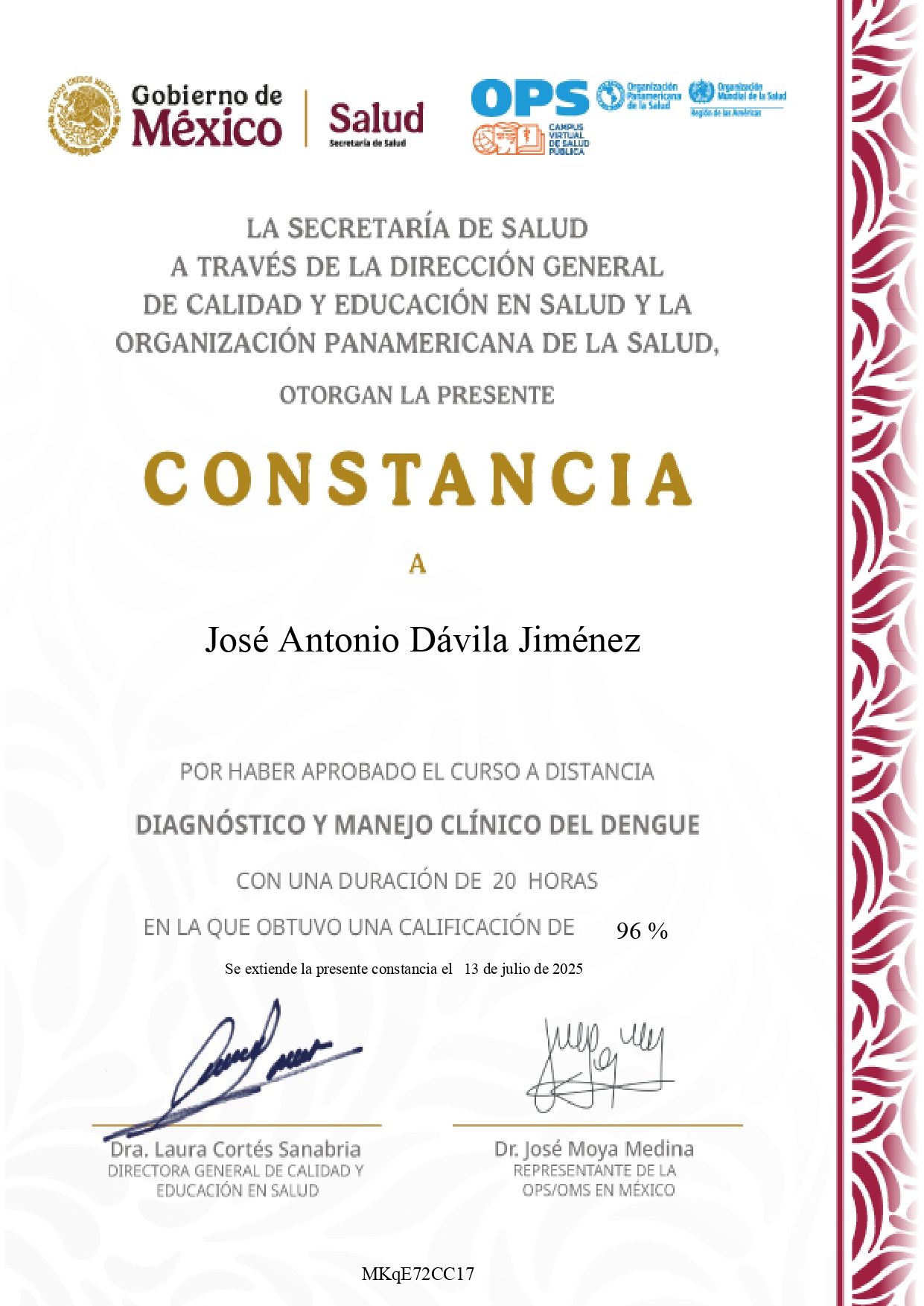 -Egresado de la especialidad en Medicina Interna del 2019 a 2023 en el Hospital Universitario "Dr. José Eleuterio González" de la UANL.