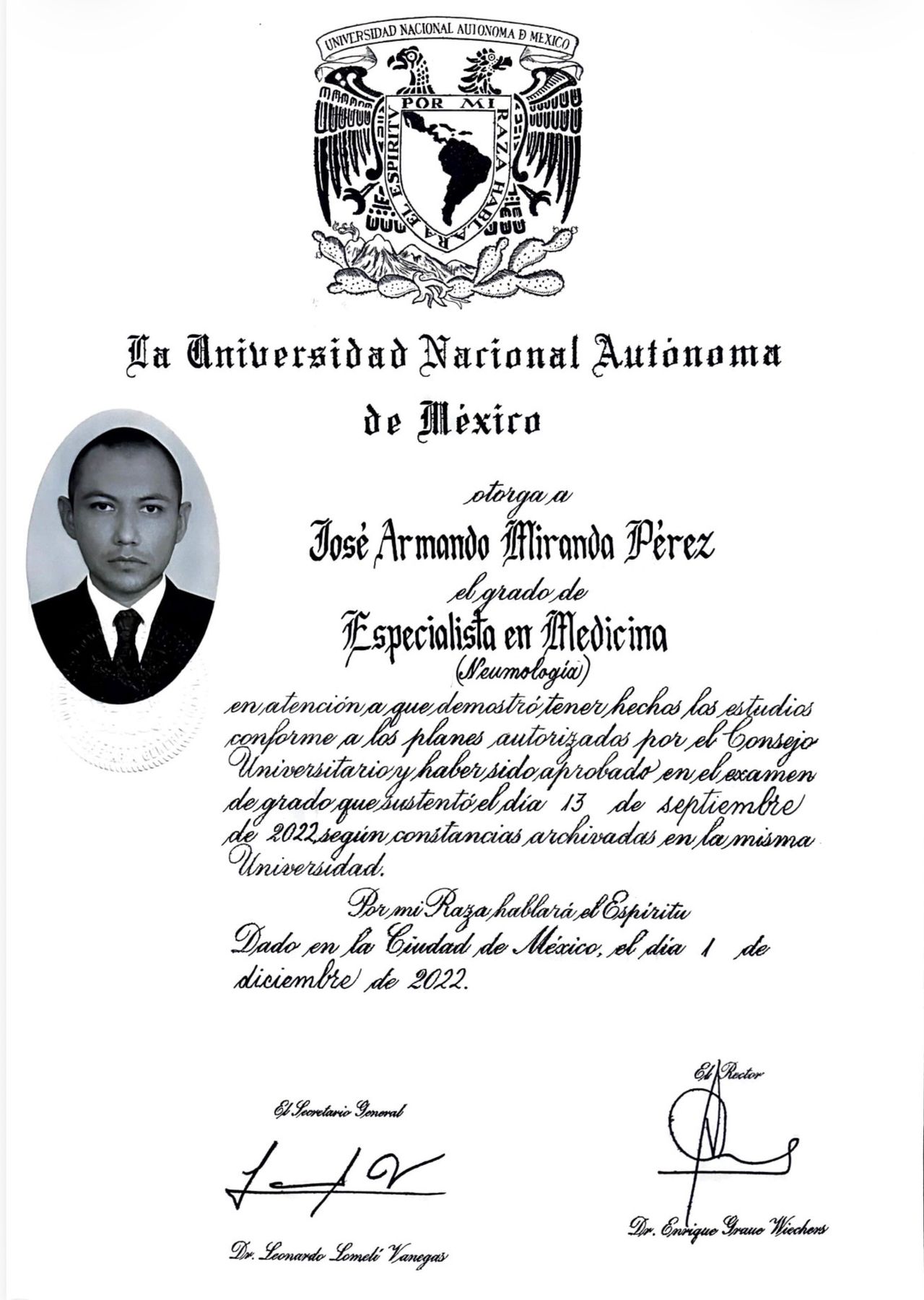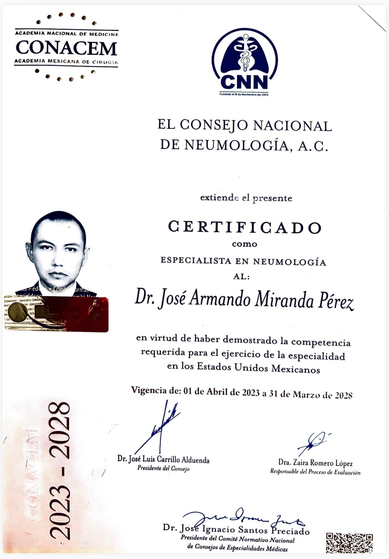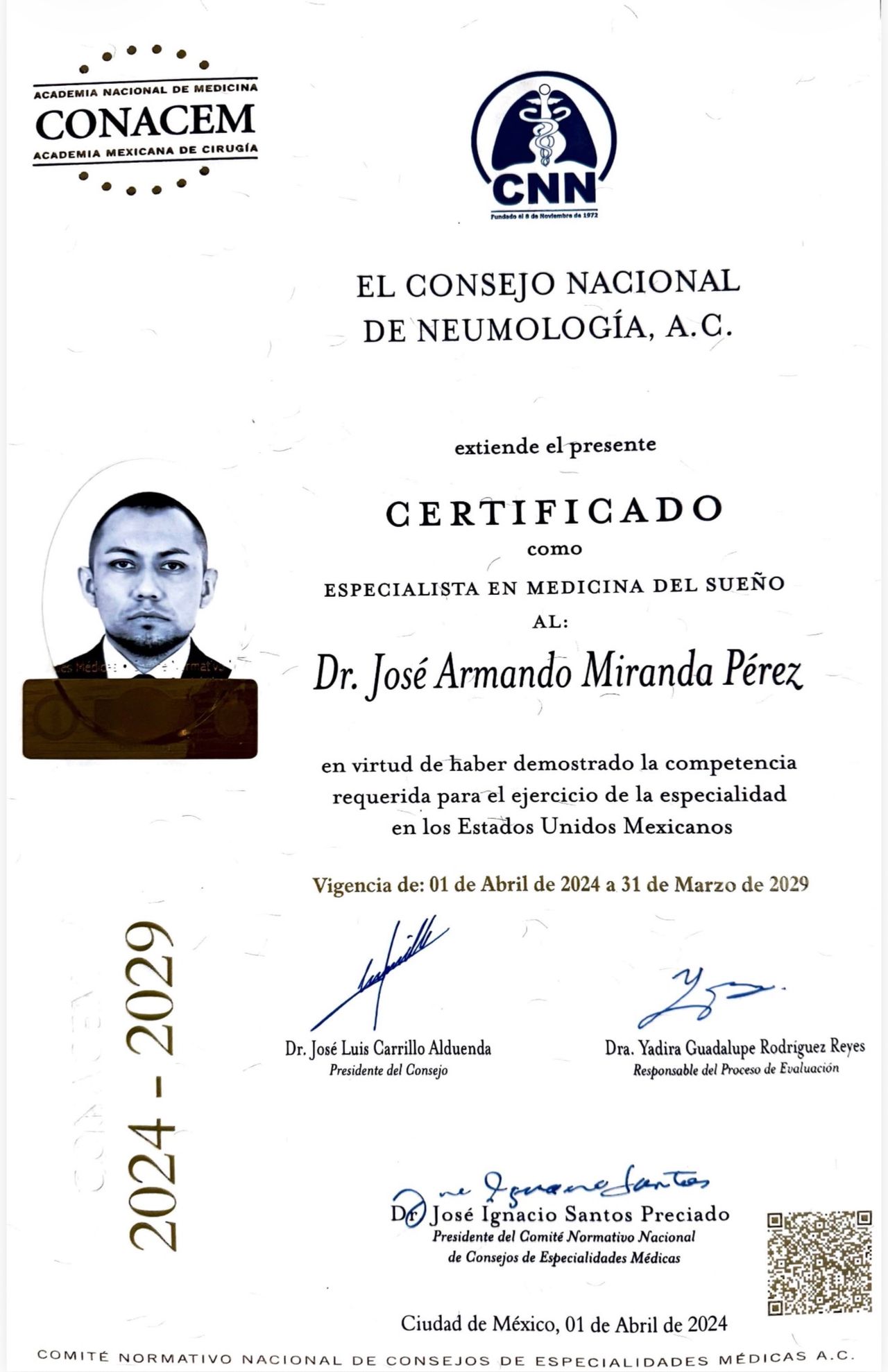 Soy el Dr. José Armando Miranda Pérez, especialista en enfermedades del aparato respiratorio y trastornos del sueño. Mi propósito es brindar atención médica de calidad y con calidez, ayudando a mis pacientes a respirar mejor, a tener un sueño de calidad y disfrutar de una vida más saludable.