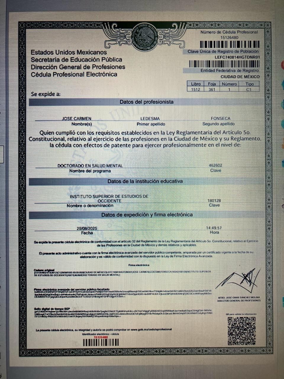 • Consultorio Dr. José Carmen Ledesma Fonseca • Primera visita Psicología •