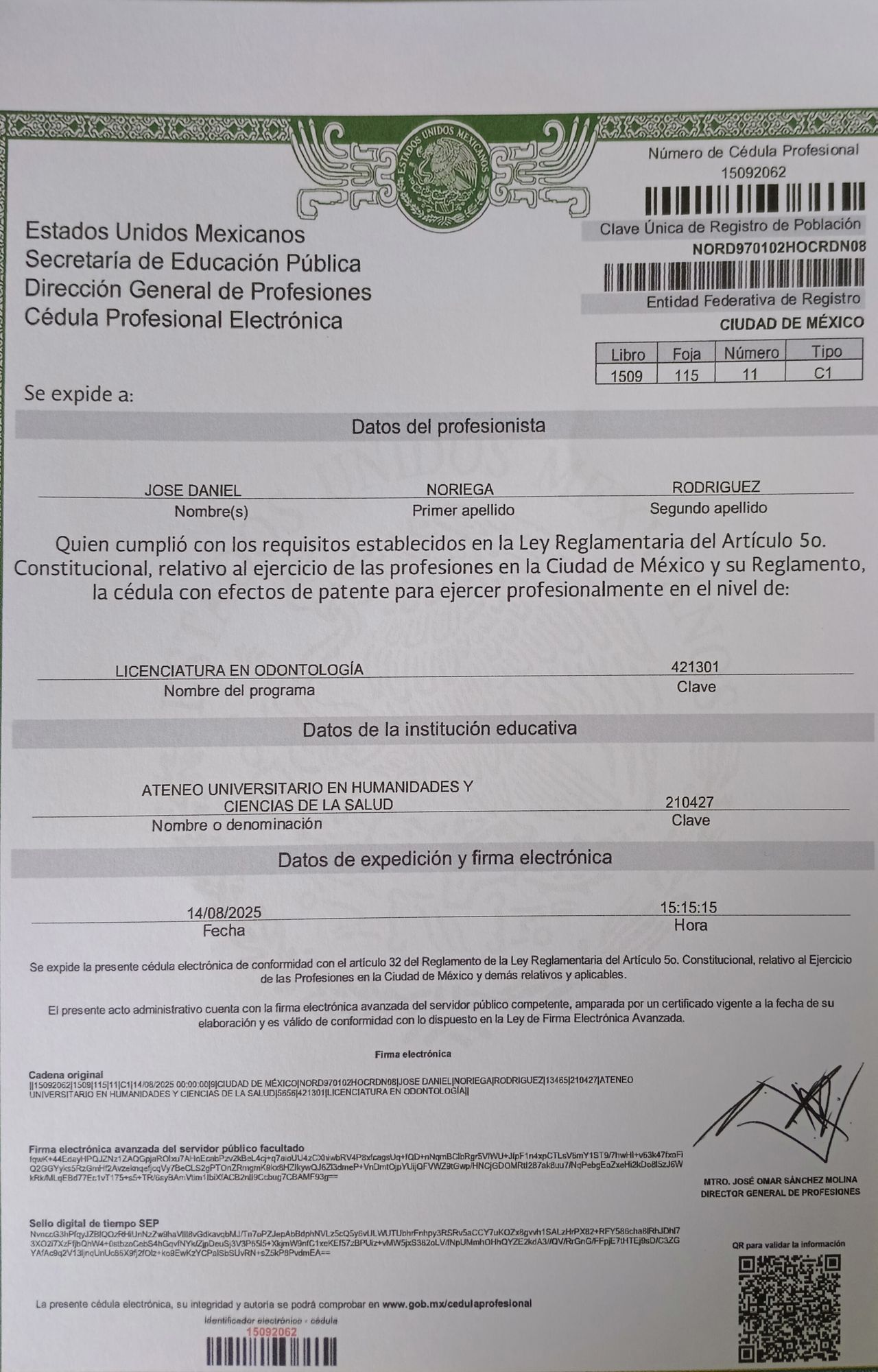 Hola soy el Dr Jose Daniel Noriega Rodríguez del consultorio Dental Care de Odontología Integral