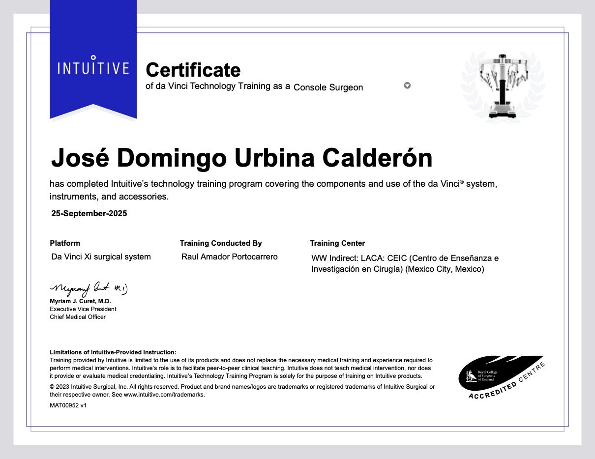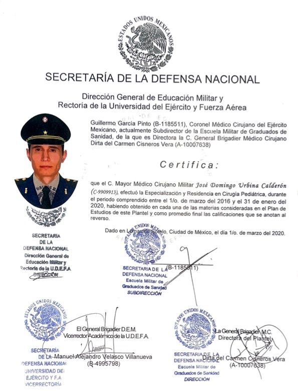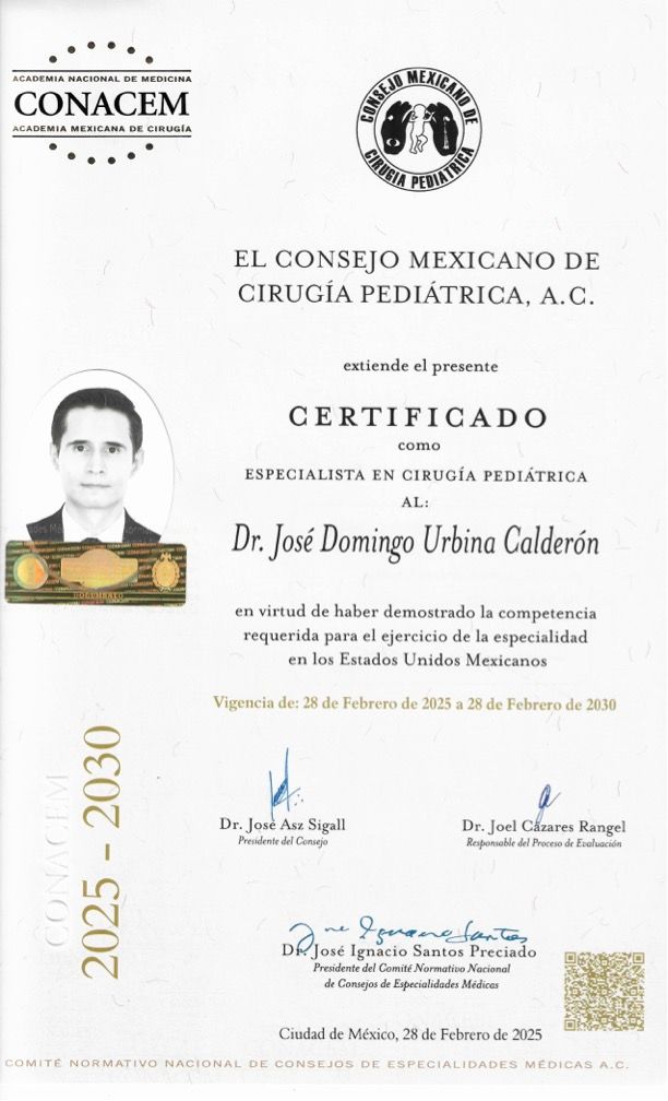 Sin duda, recomiendo al Dr. Urbina a cualquier familia que busque un cirujano pediatra en general y urólogo en lo particular capacitado y comprometido con la salud y el bienestar de sus pacientes .