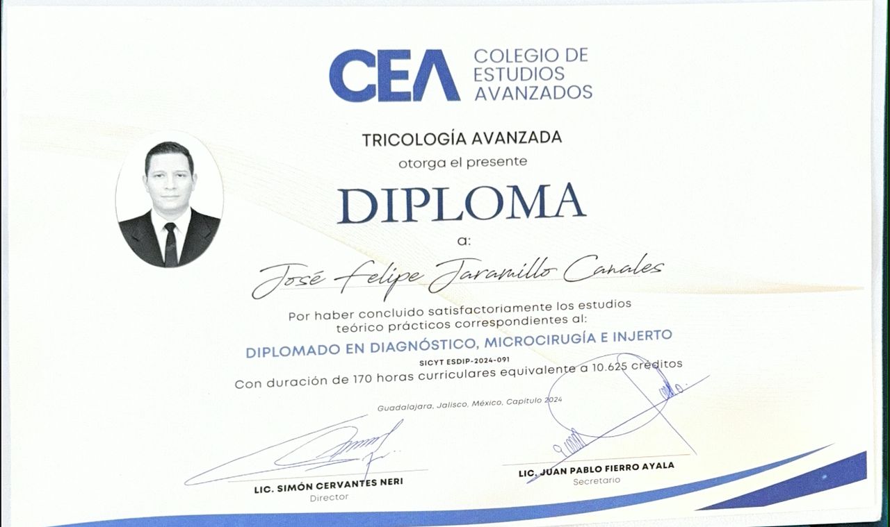 "Estoy muy satisfecho con los resultados. La mejoría ha sido notable y ha superado mis expectativas lo Recomiendo sin dudarlo a cualquiera que necesite una solución profesional para sus problemas capilares sin duda el mejor• Dr Felipe Jaramillo, Medicina Capilar y Estética, Polanco (Consultorio Principal) • Consulta capilar •