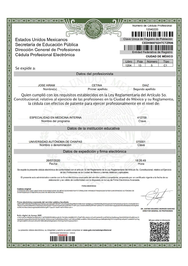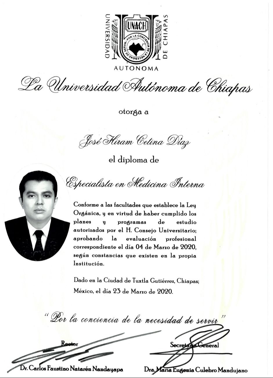 Soy el Dr. José Hiram Cetina Díaz, médico especialista en Medicina Interna.