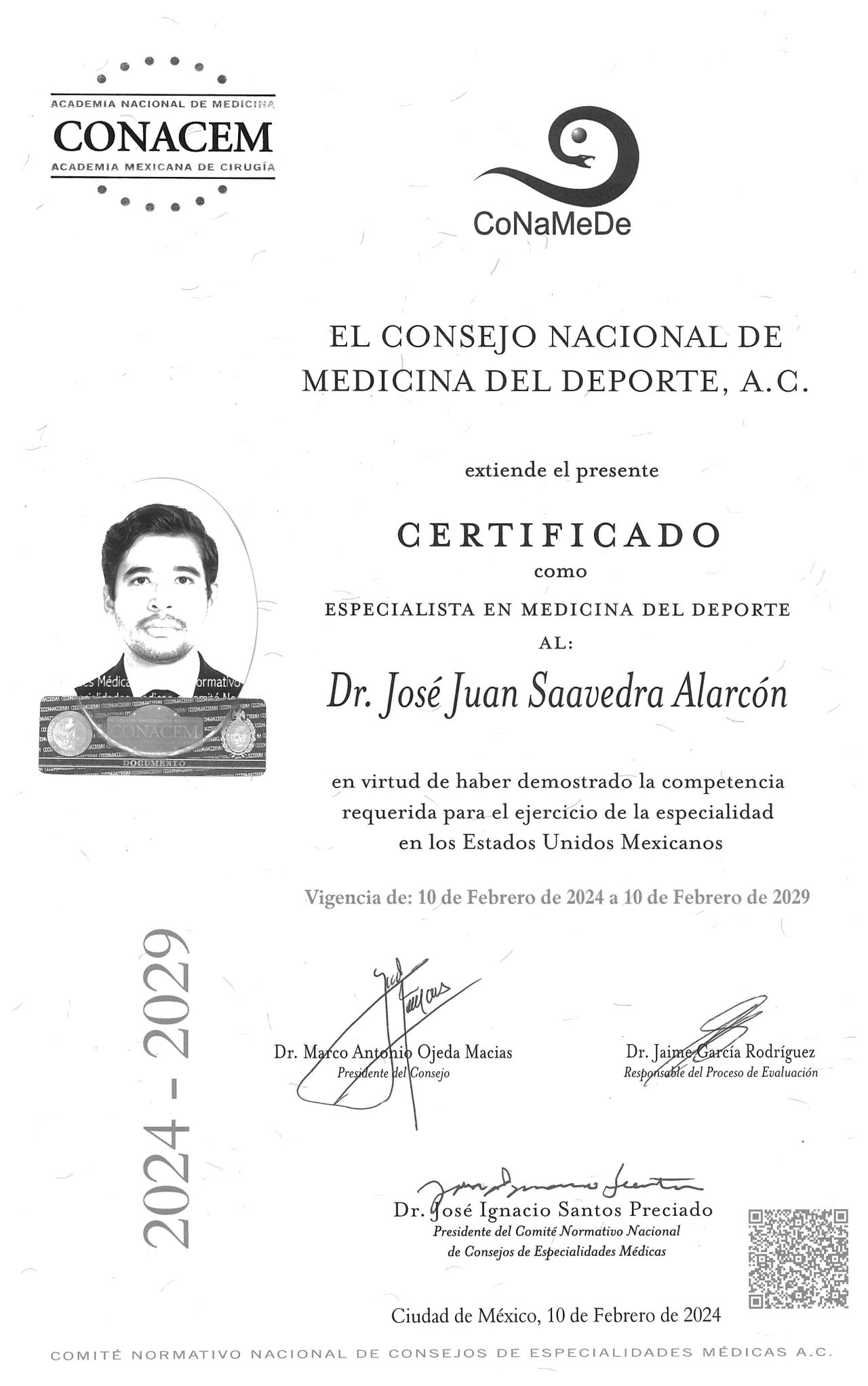 ¡Hola! Soy el Dr. José Juan Saavedra, especialista en Medicina de la Actividad Física y Deporte por el Instituto Nacional de Rehabilitación y Médico Cirujano por la UNAM.