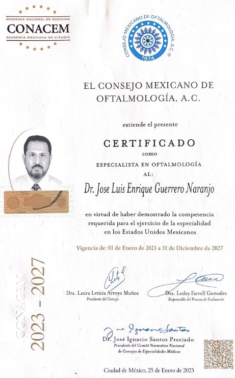 He complementado mi formación con un fellowship en el Bascom Palmer Eye Institute y soy miembro activo de importantes sociedades nacionales e internacionales como la Sociedad Mexicana de Oftalmología, la American Academy of Ophthalmology (AAO), la Association for Research in Vision and Ophthalmology (ARVO) , Consejo Mexicano de Oftalmología (CMO) y Colegio de Oftalmólogos de Baja California (COBC)