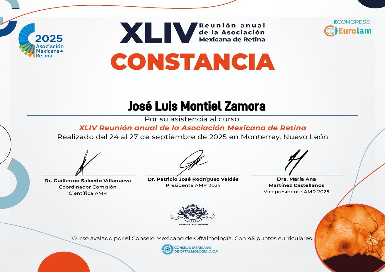 • Trabajo libre ‘Características clínicas y epidemiológicas de Retinosis Pigmentaria en un centro de referencia en México’ - XXXV Reunión Anual de Retina, 2016.