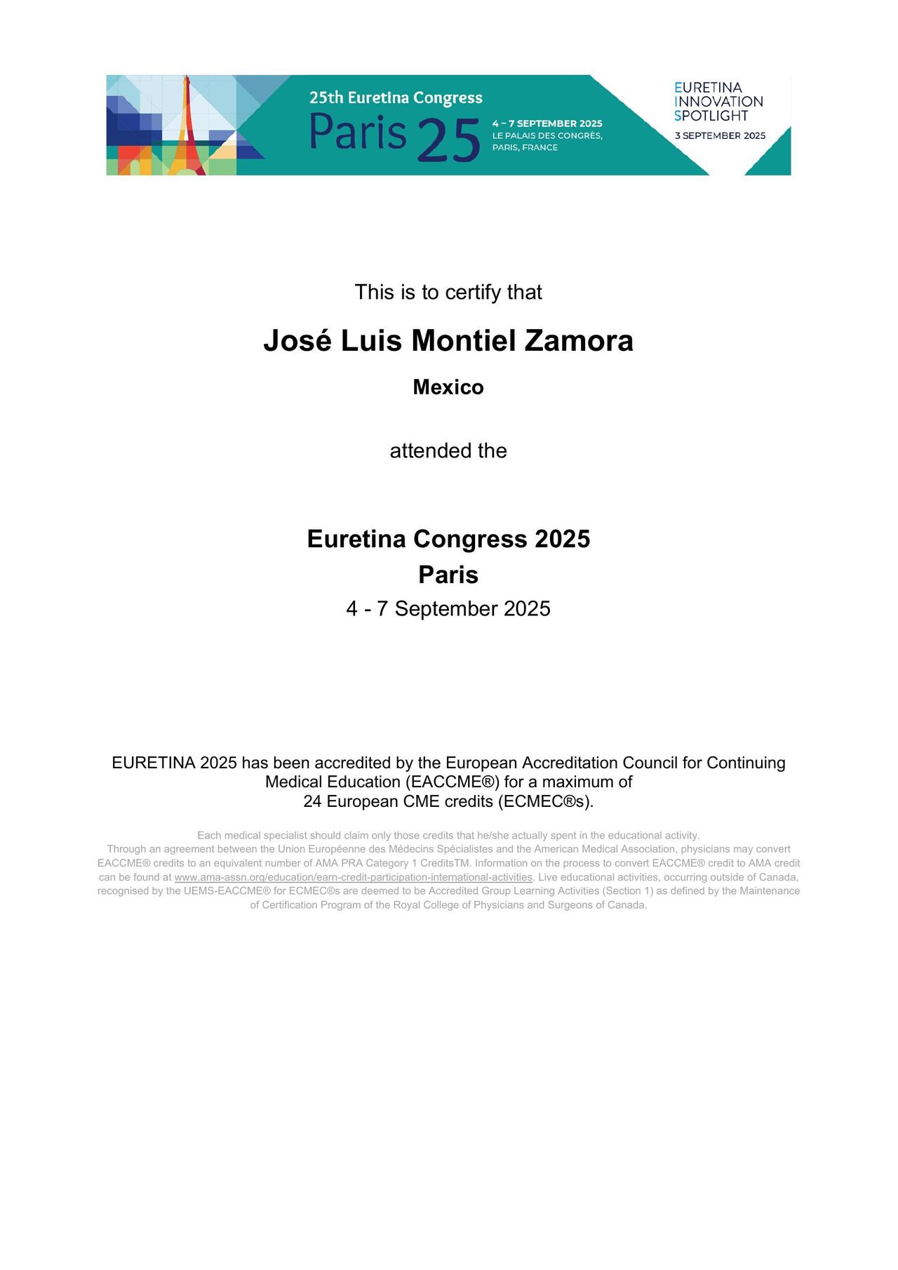 • Trabajo libre ‘Membrana neovascular secundaria a osteoma coroideo bilateral en paciente pediátrico’ - XXXV Reunión Anual de Retina, 2016.