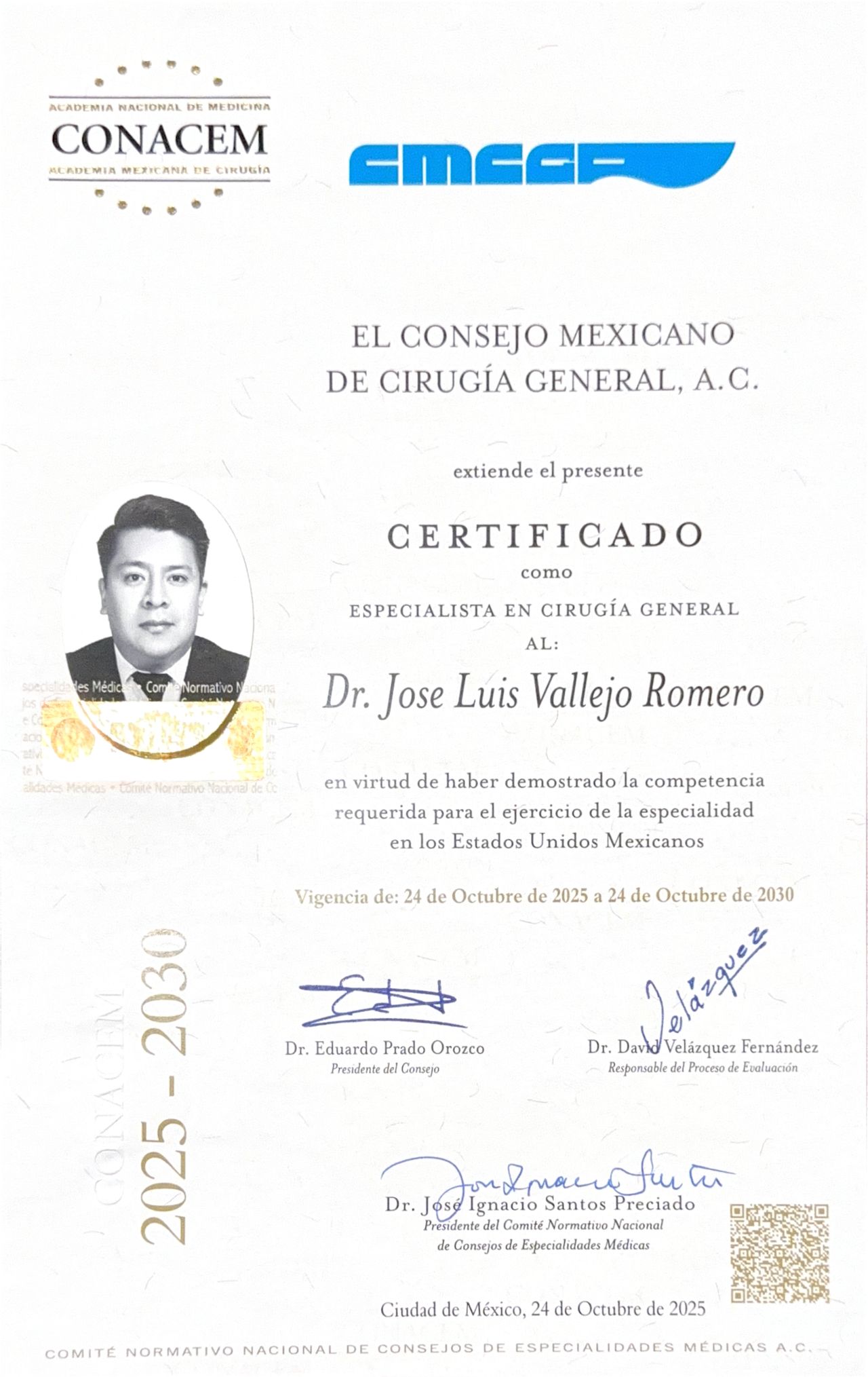 Soy José Luis Vallejo Romero, Cirujano General certificado y avalado por el Consejo Mexicano de Cirugía General A.C.