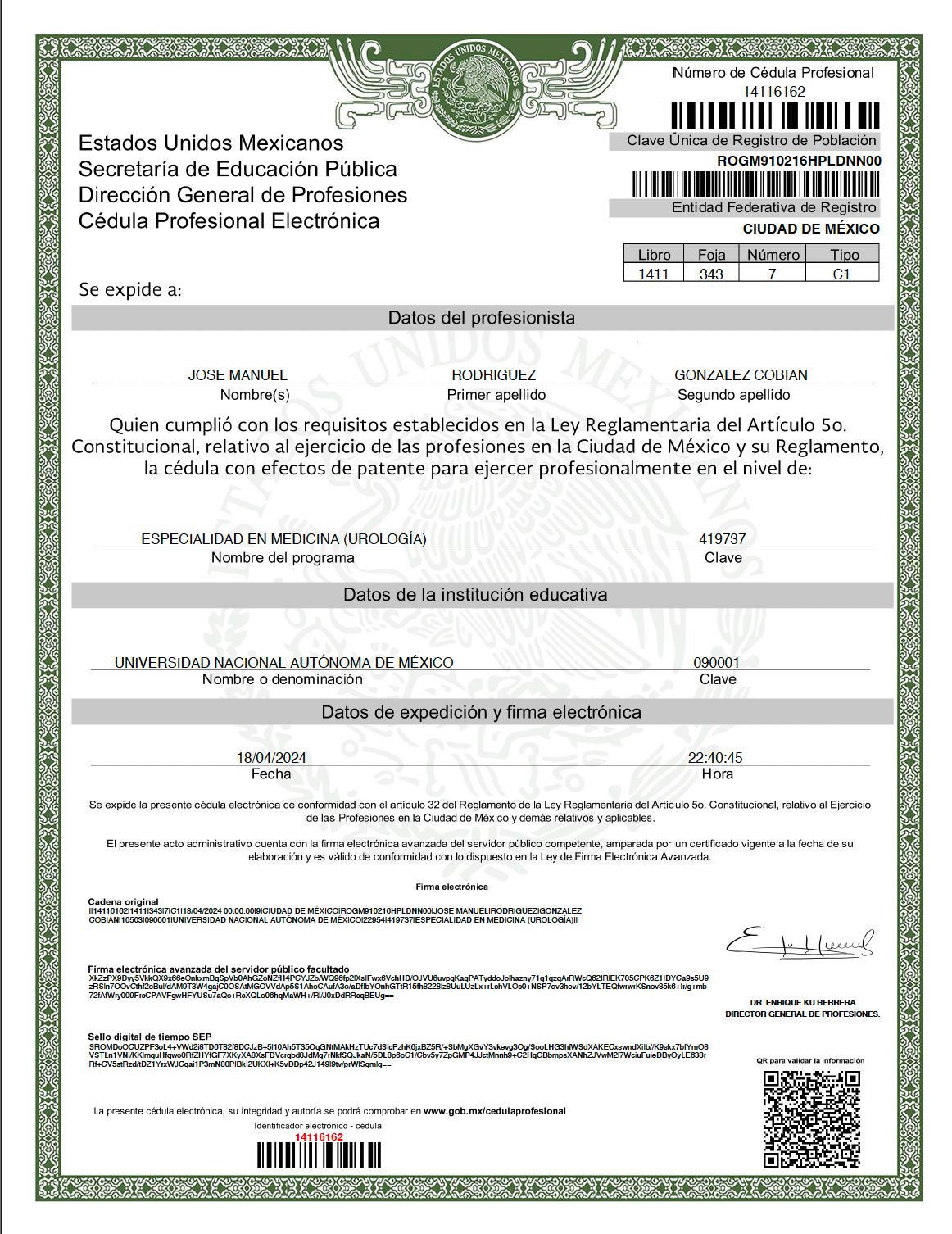 Dr. José Manuel Rodríguez González Cobián