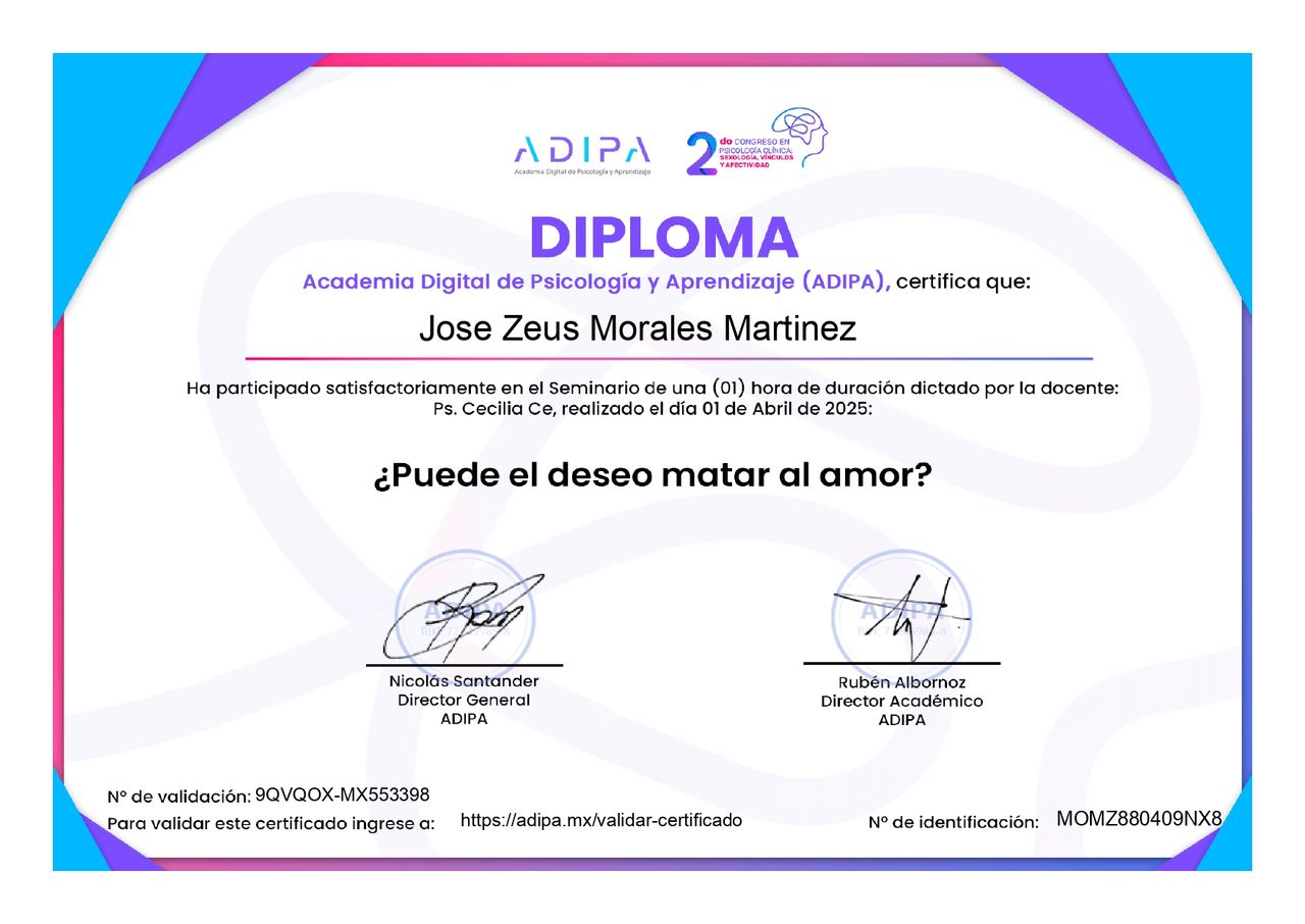 La atención es profesional; excelente seguimiento que da confianza al recibir constantes herramientas prácticas y de guía para el día a día. Mi familia y yo estamos agradecidos por la atención recibida; en lo personal, lo estoy con el Psicólogo José Morales