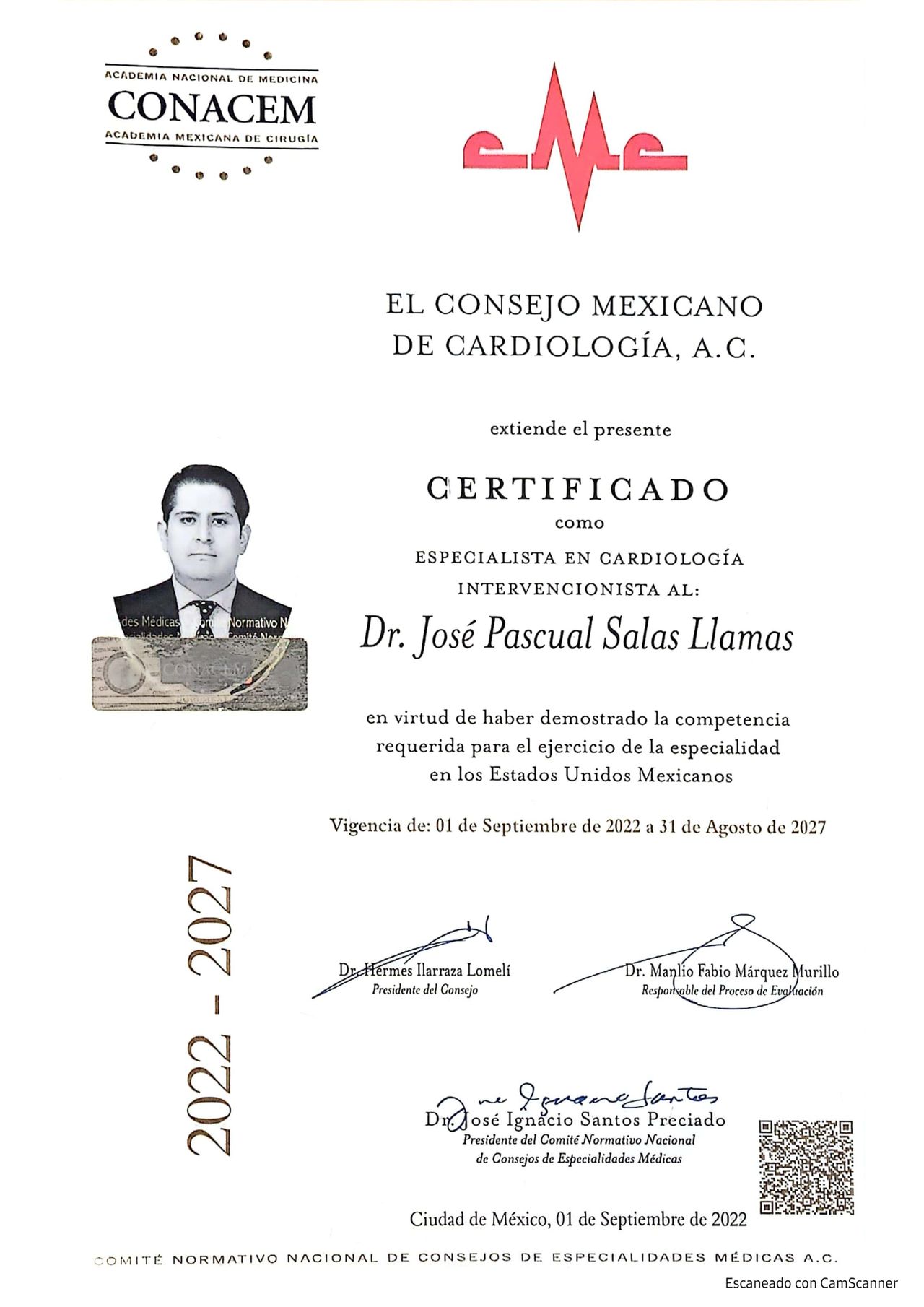 • Certificación vigente por el Consejo de Cardiología Clínica de México ID 2413