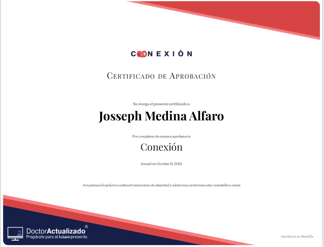 Misión: Proporcionar atención médica integral y personalizada, enfocada en la prevención, diagnóstico y tratamiento de enfermedades, mejorando la calidad de vida de mis pacientes con empatía y profesionalismo.