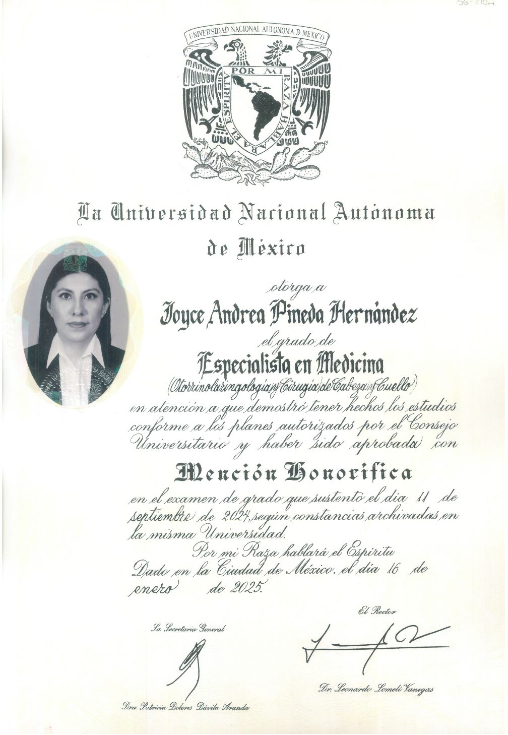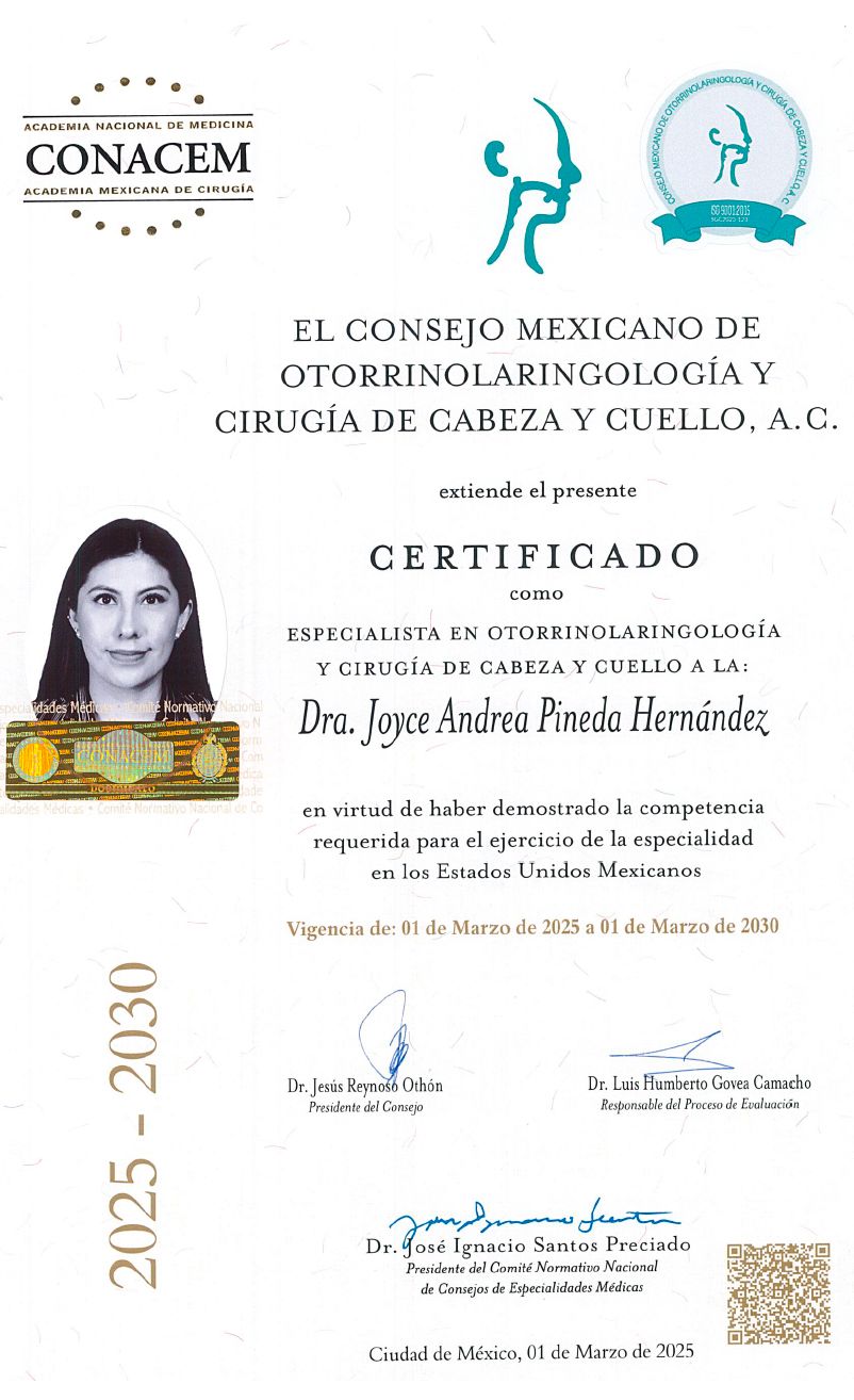 Hola! Soy la Dra. Joyce Andrea Pineda Hernández, otorrinolaringologa, me especializo en ronquido y apnea del sueño