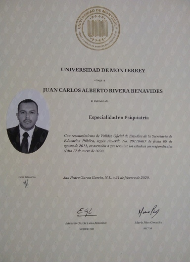 Mi atención va dirigida a todas las personas que estén presentando algún trastorno mental, y a aquellas que busquen un medio de autoconocimiento. En la primera sesión, se inicia un proceso de evaluación, la cual se puede extender a tres o cuatro citas, esto con la finalidad de llegar a un diagnóstico correcto, y así poder elaborar un plan de tratamiento, el cual puede ser farmacológico, psicoterapéutico o combinado, esto varía según las necesidades y deseos del paciente. Me forme como Psiquiatra en el Instituto Mexicano del Seguro Social, en la ciudad de Monterrey, y posteriormente realice una maestría en Terapia cognitivo conductual en el Centro de Terapia Cognitiva. Durante mi formación, tuve la oportunidad de ver pacientes en diferentes niveles de atención, desde consulta externa ambulatoria, hasta pacientes en internamiento en hospital psiquiátrico. Así como tratar pacientes en psicoterapia individual, grupo y familia, empleando diferentes técnicas de tratamiento (psicoterapia psicoanalítica, psicoterapia cognitivo conductual, etc.). Durante el último año de mi formación, tuve el puesto de Jefe de Residentes. Soy psiquiatra certificado por el Consejo Mexicano de Psiquiatría.