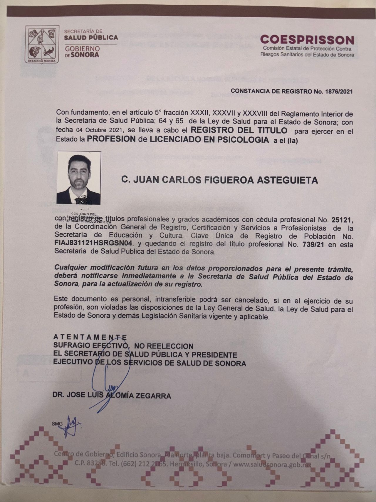 • Juan Carlos Figueroa Asteguieta • Visita Psicología •