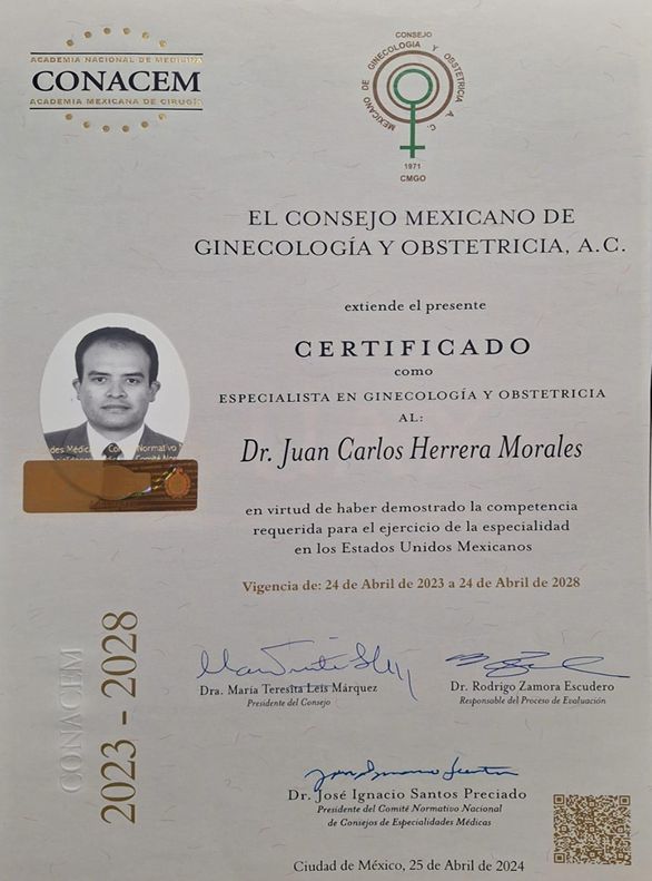Certificado por el Consejo Mexicano de Ginecología y Obstetricia