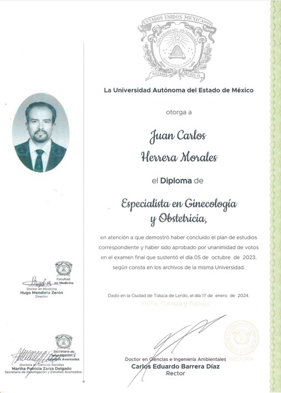 Egresado de la especialidad de Ginecología y Obstetricia avalado por la UAEMEX, CP 14149195