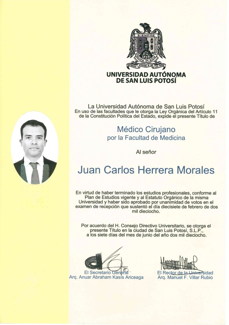Licenciatura por la Universidad Autónoma de San Luis Potosí CP 11118917