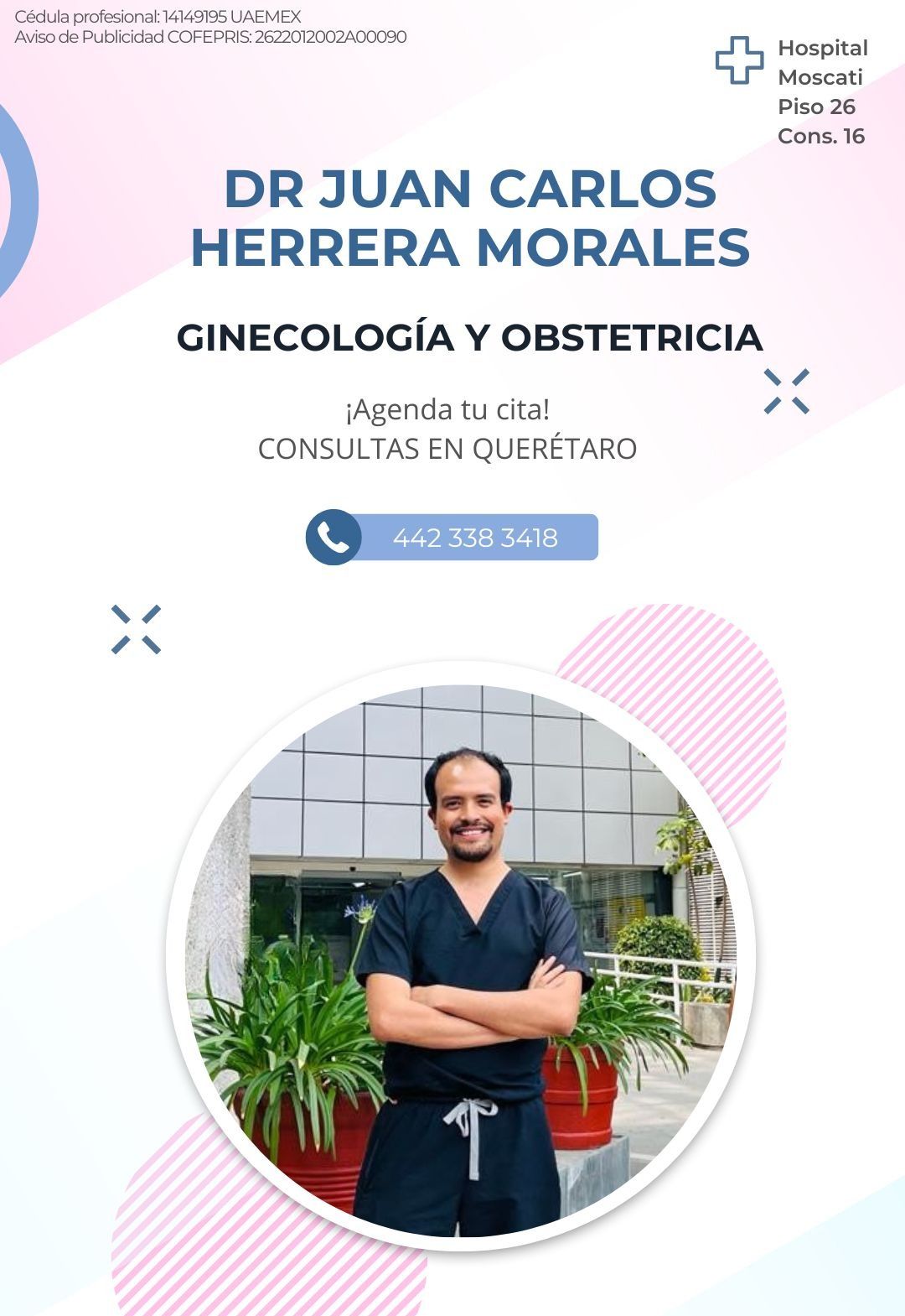 Bienvenida. Soy el Dr. Juan Carlos Herrera Morales, Ginecólogo con subespecialidad en Urología Ginecológica. Me especializo en el tratamiento médico y quirúrgico de padecimientos ginecológicos, trastornos del piso pélvico, infecciones recurrentes y salud femenina integral. Mi consulta combina recursos médicos modernos con un trato ético y personalizado, enfocado siempre en brindarte la mejor solución para tu salud ginecológica y urinaria.