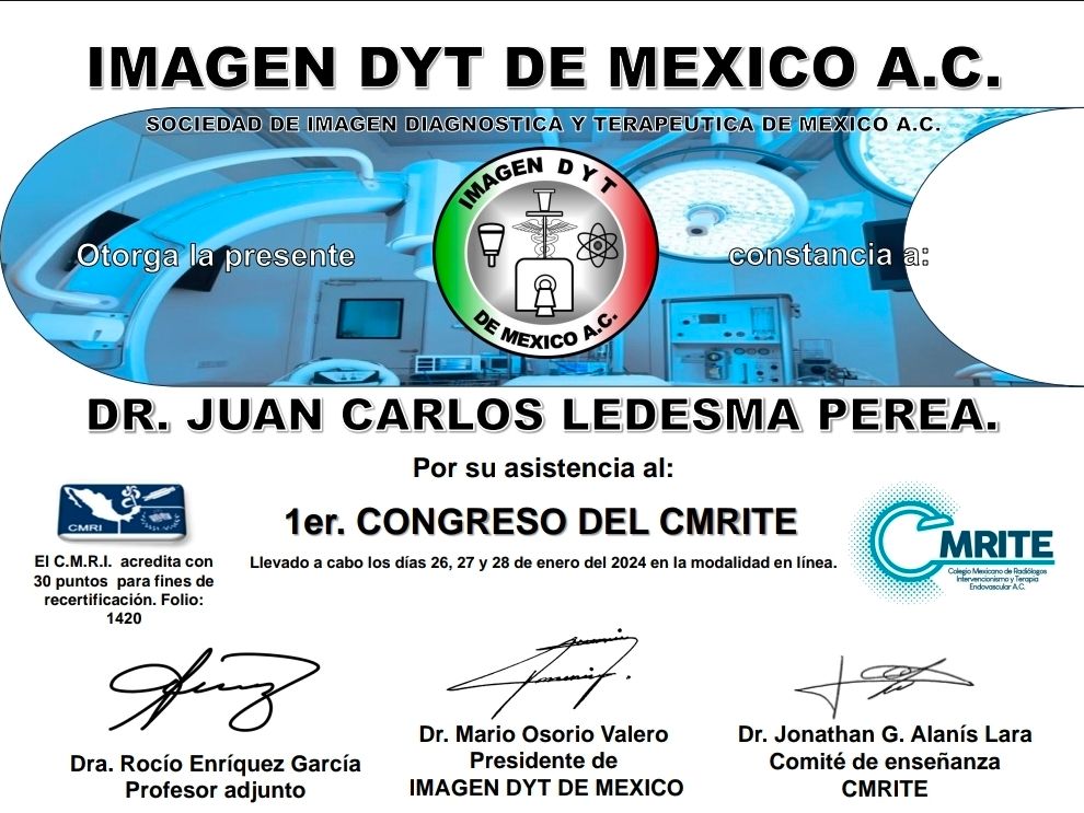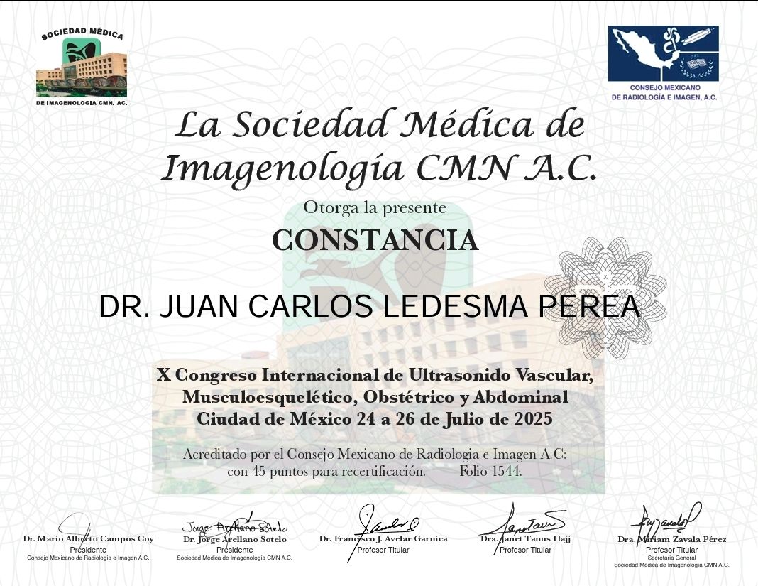 Soy el Dr. Juan Carlos Ledesma, especialista en Radiología Intervencionista con amplia experiencia en el diagnóstico integral de enfermedades metabólicas, hormonales e inflamatorias.