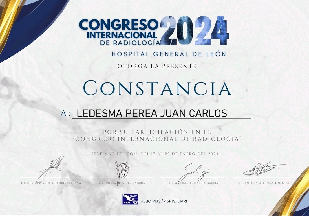Premio por participación como expositor de cartel "IMPORTANCIA DEL ULTRASONIDO COMPLEMENTARIO PARA EL DIAGNOSTICO INTEGRAL DE MAMAS EN PACIENTES CON MAMAS DENSAS, PATRON TIPO c Y d DE DENSIDAD POR MAMOGRAFÍA"