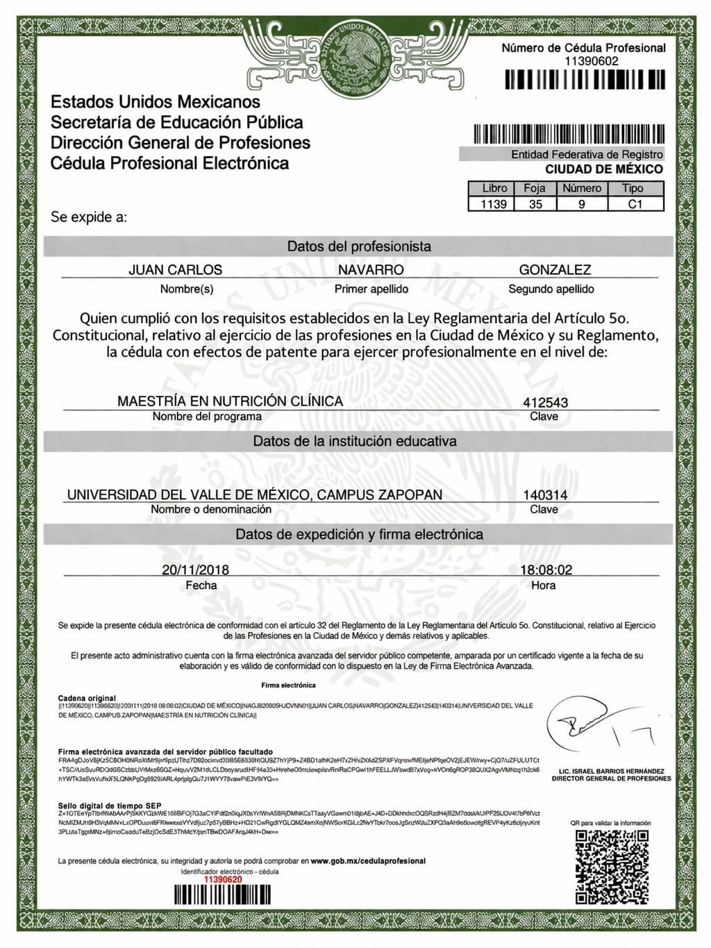 No. de cédula: 6923939 11390620