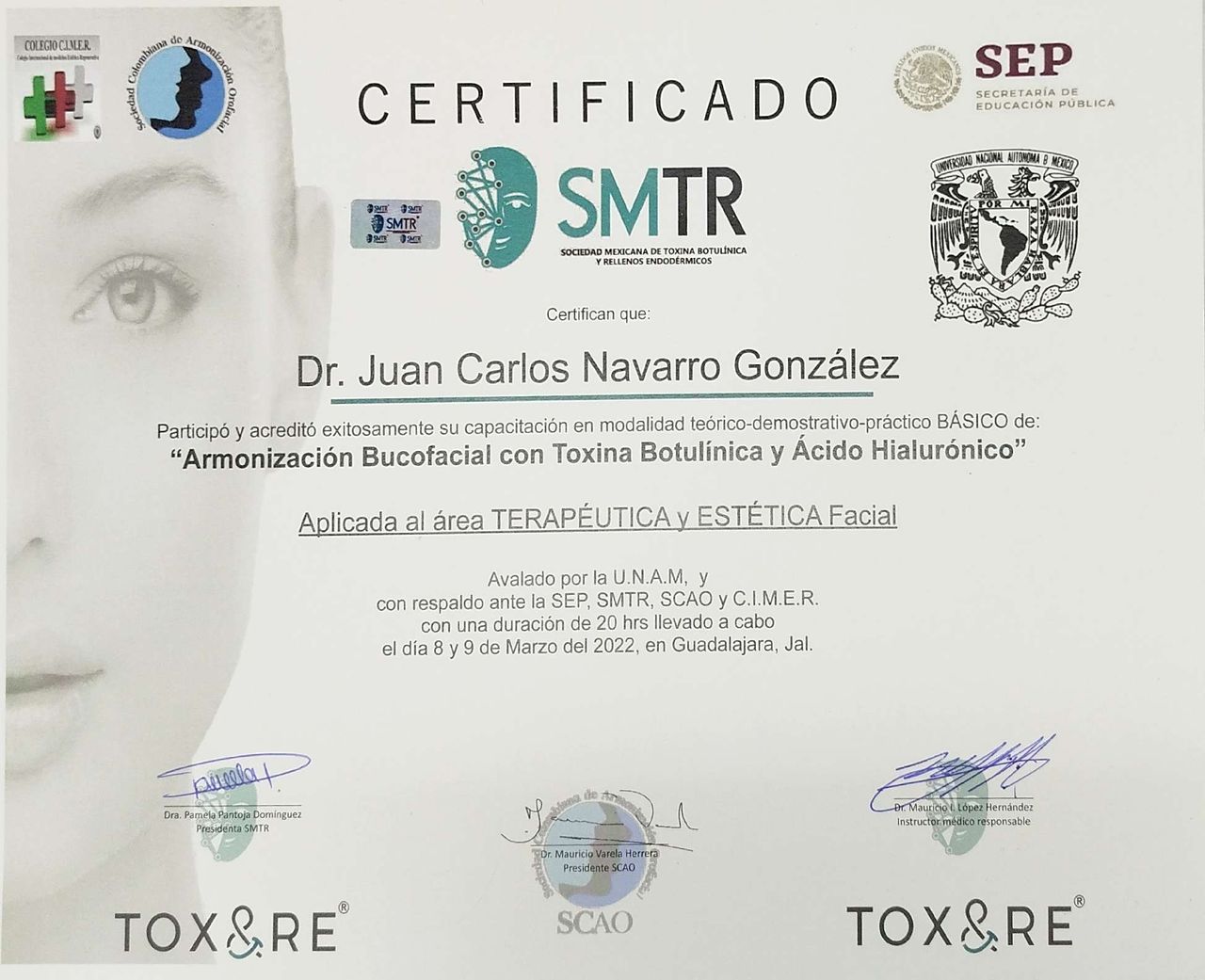 Mi enfoque se centra en el bienestar metabólico y el anti-envejecimiento, respaldado por una formación académica de excelencia (UdeG, UVM Laureate international universities) y certificaciones ante el Colegio Médico Científico CCME, Sociedad colombiana de armonización orofacial y la Sociedad mexicana de toxina botulínica y rellenos endodérmicos.