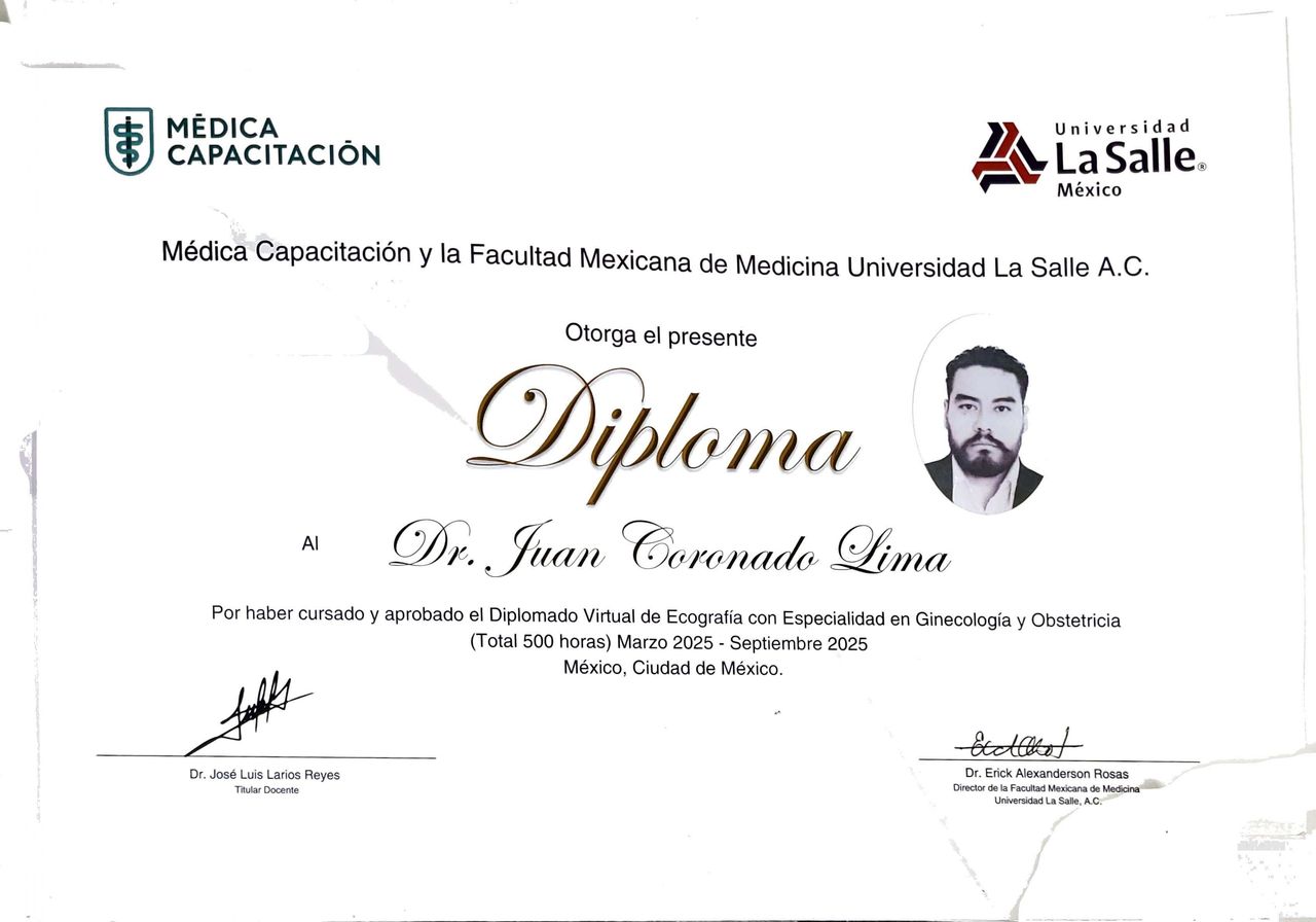 ¡Hola! Soy el Dr. Juan Coronado Lima, ginecólogo apasionado por la salud integral de la mujer. Mi objetivo es ofrecerte una atención profesional, cercana y de confianza, donde te sientas escuchada y cómoda para resolver todas tus inquietudes. Te doy la bienvenida a un espacio dedicado a tu bienestar.