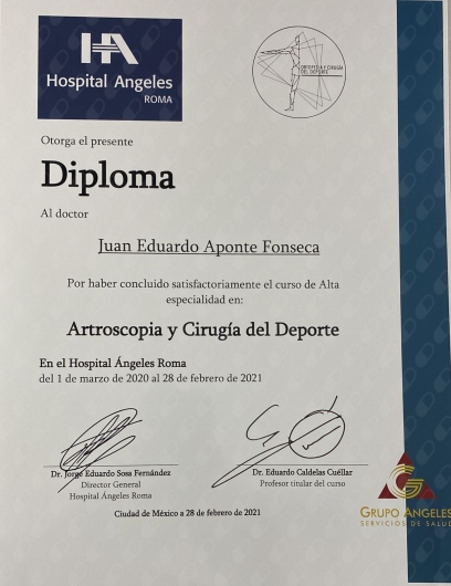 Especialista en Traumatología y Ortopedia por parte de la Escuela Mexicana de Medicina de la Universidas La Salle CdMx