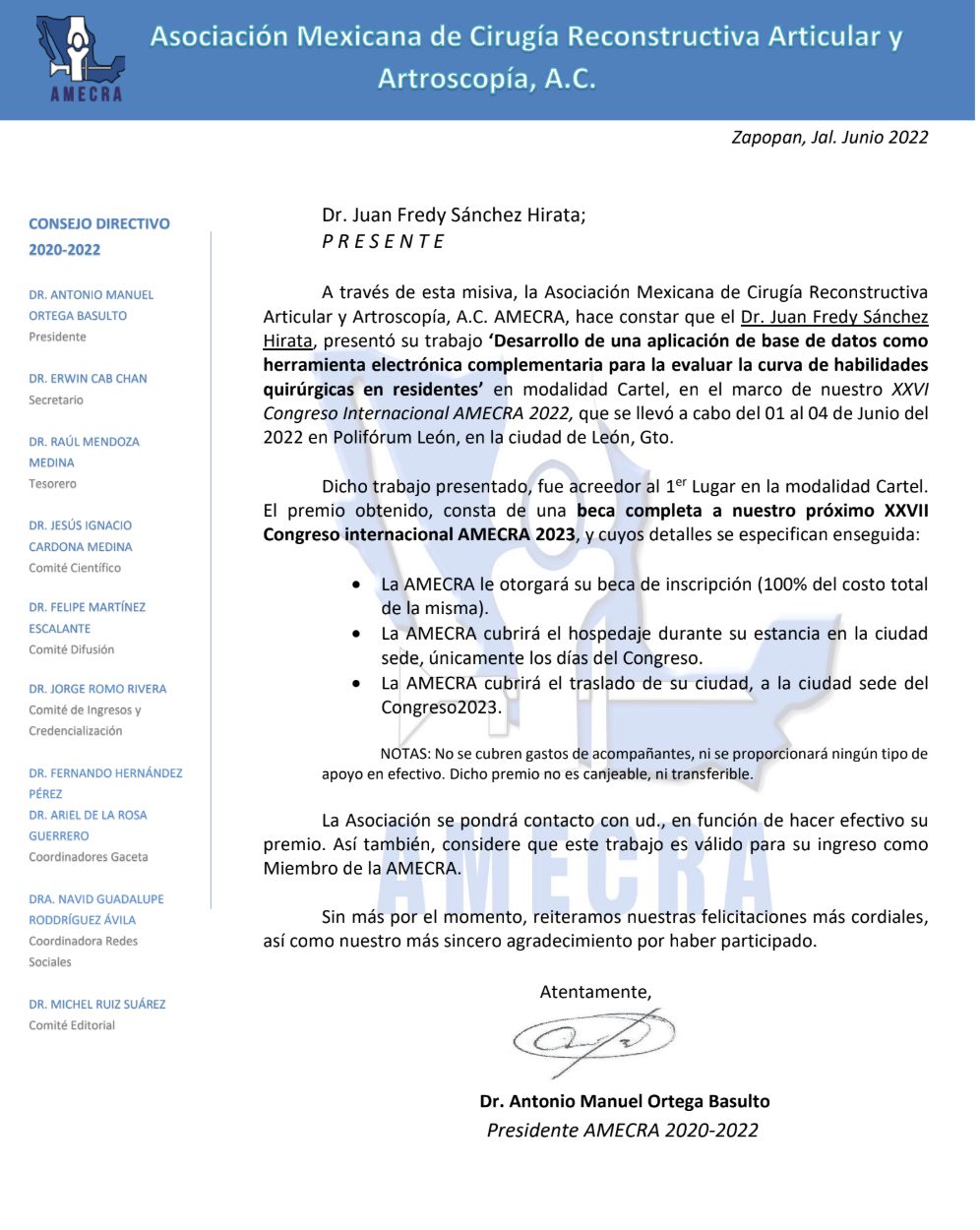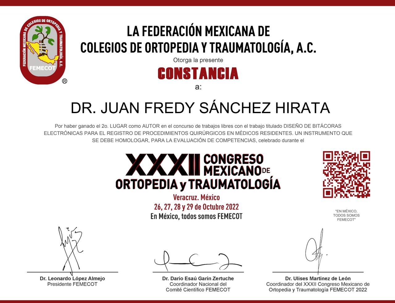 El Dr. Fredy Sánchez Hirata es médico especialista en Traumatología y Ortopedia, egresado de la Universidad Nacional Autónoma de México (UNAM). Realizó su formación como especialista en el Hospital de Traumatología y Ortopedia “Lomas Verdes”, uno de los centros de referencia a nivel nacional en el manejo de patología musculoesquelética.