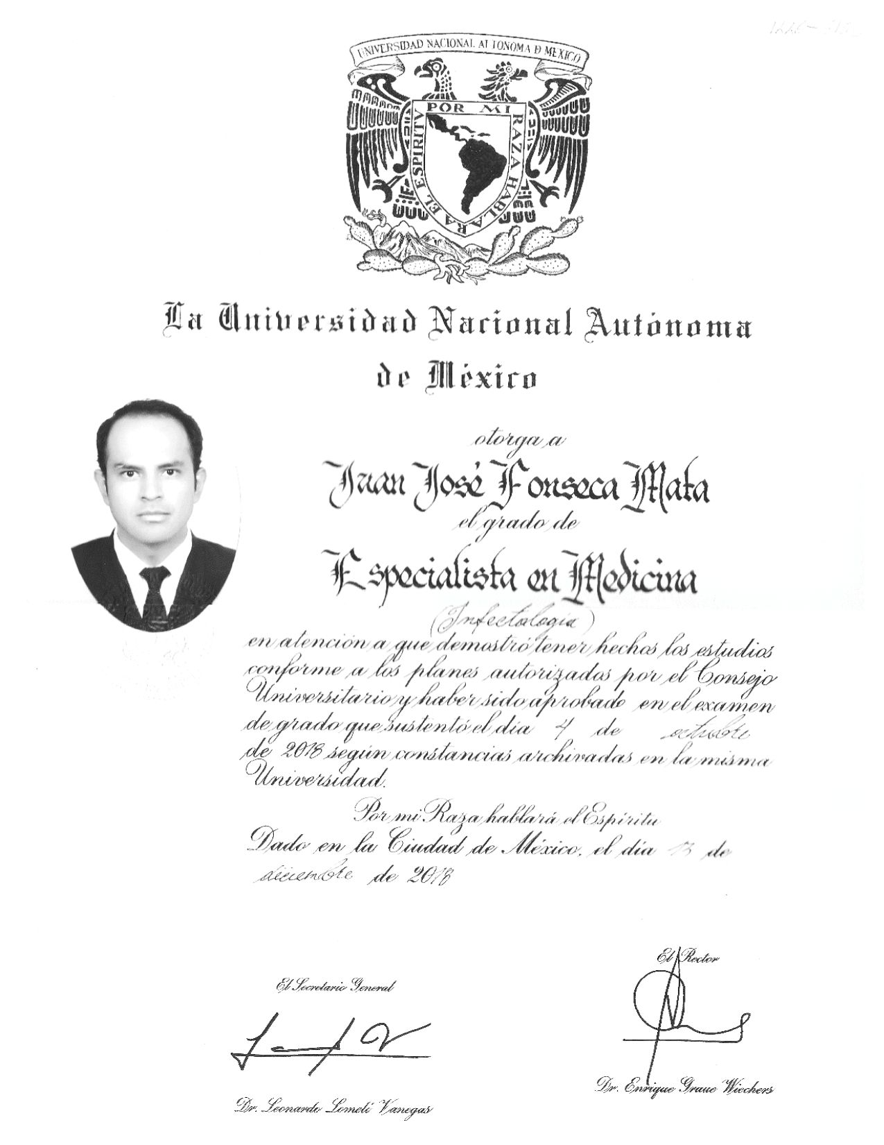 Me formé como especialista en Medicina Interna en el Hospital General de México, en la Ciudad de México, institución en la que también realicé mis estudios de subespecialidad en Infectología. Ambas formaciones están avaladas por la Universidad Nacional Autónoma de México (UNAM), una de las universidades de mayor prestigio en Latinoamérica.