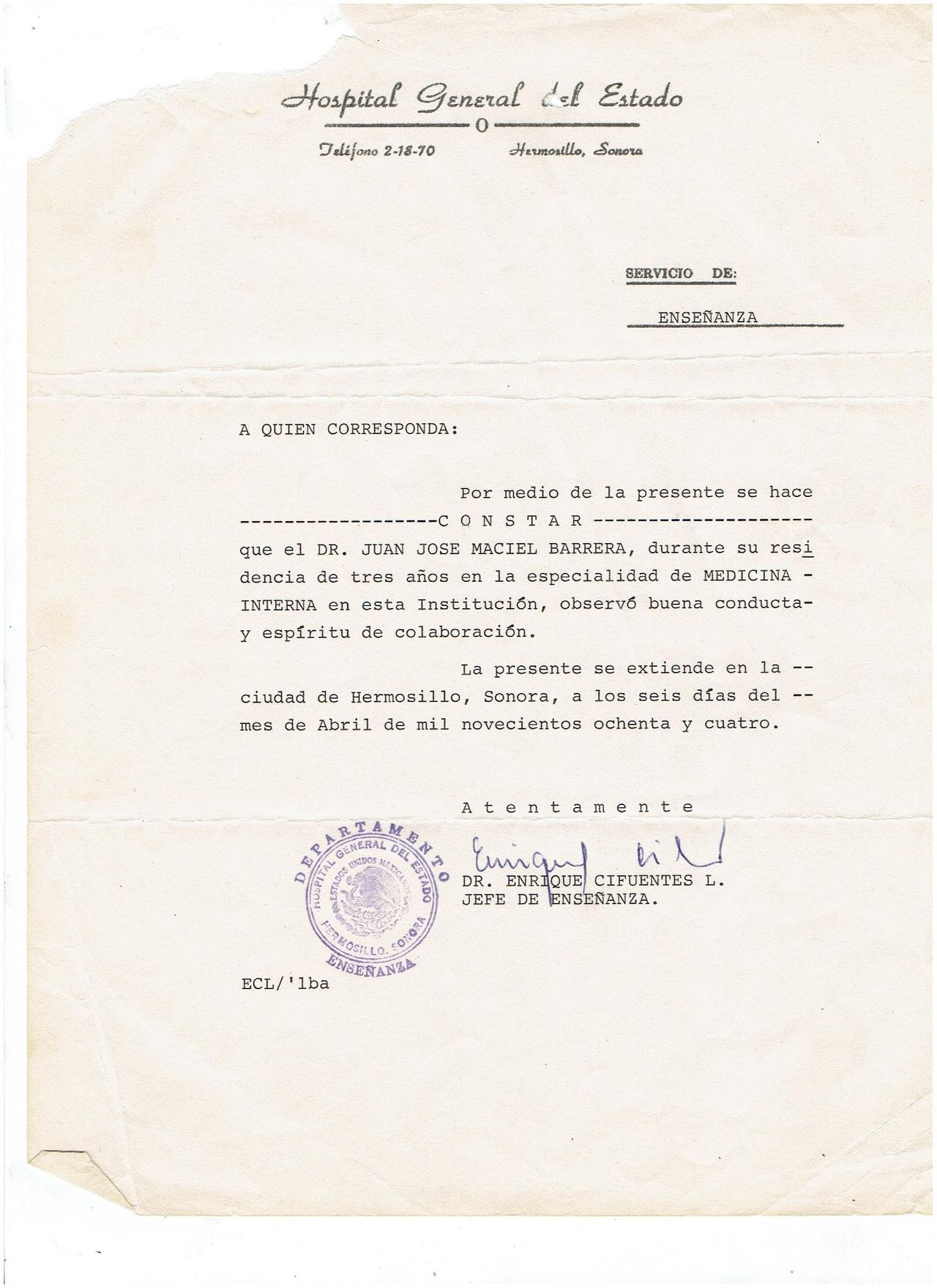 Dr. Juan José Maciel exelente médico Internista con bastante Experiencia
