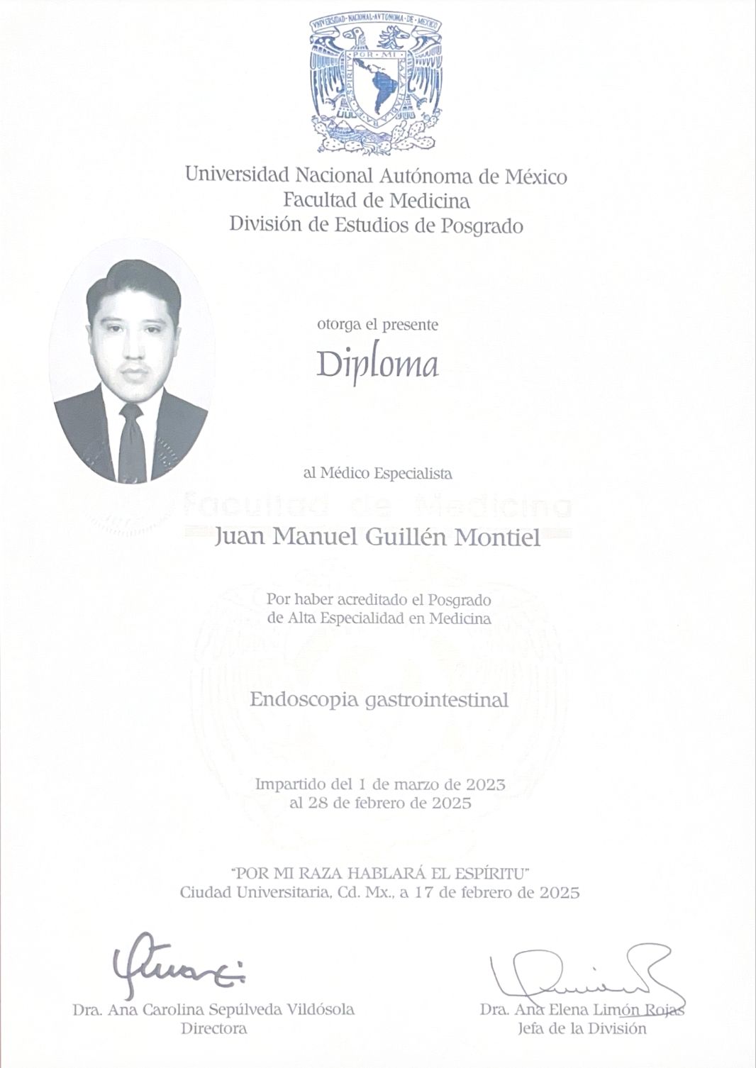Hola, mi nombre es Juan Manuel Guillén. Estudié la licenciatura como Médico Cirujano en la UNAM, posteriormente cursé mi primera especialidad en Cirugía General por la UG; seguido de un alta especialidad en Endoscopía Gastrointestinal por la UNAM.