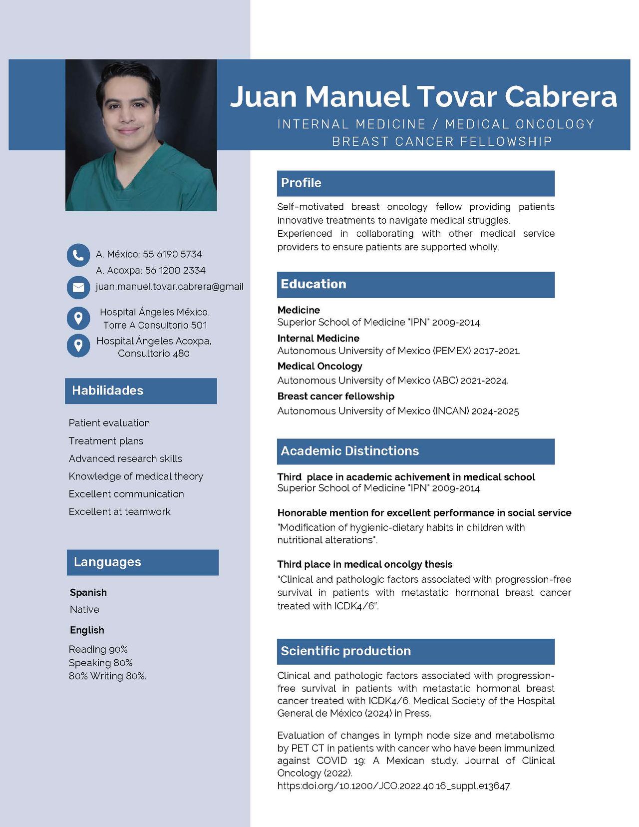 Oncólogo e Internista cuidando tu salud integralFormación en los mejores hospitales de referenciaLos pacientes valoran mi trato humano-profesional