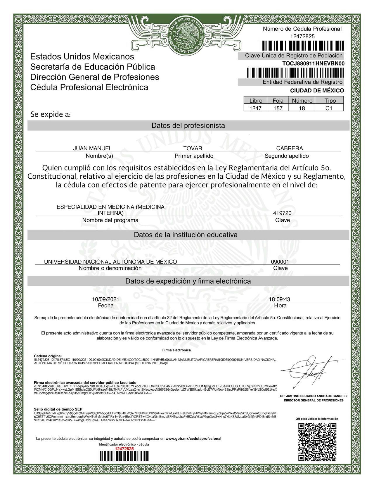 El Dr. Tovar ha estado atendiendo a mi papá, una persona adulta mayor, y ha dado puntual seguimiento a su caso, nos ha explicado todo y aclarado nuestras dudas. Ha brindado un gran acompañamiento durante todo el proceso. ¡Lo recomiendo!