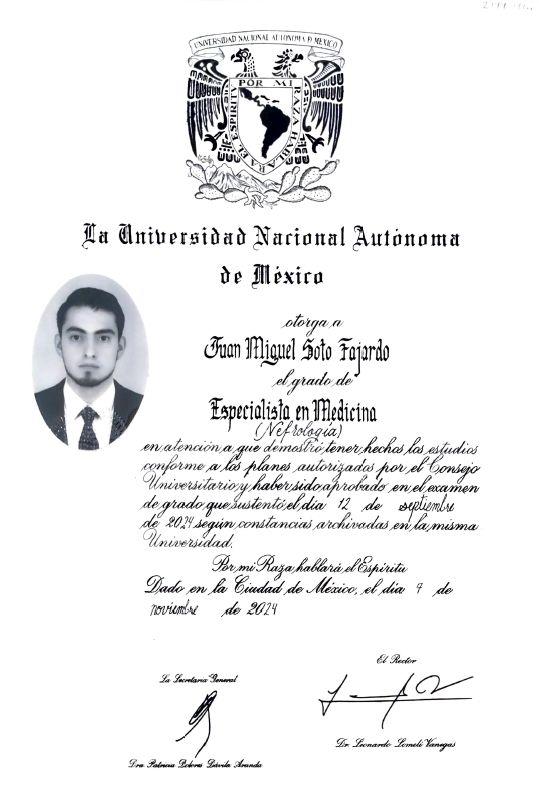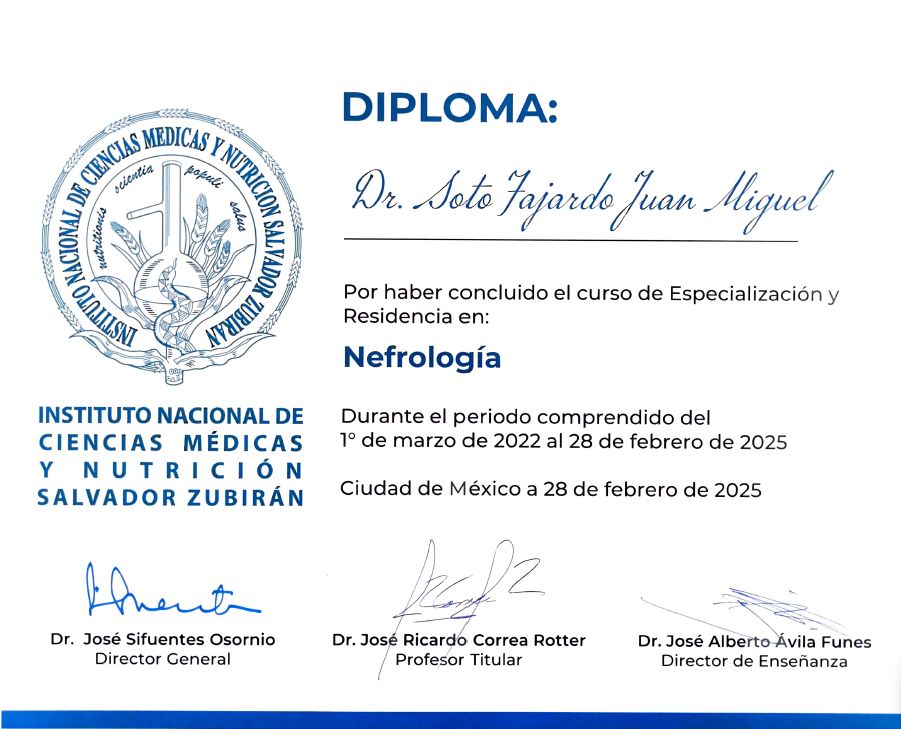 Formado como Nefrologo e Internista en el Instituto Nacional de Ciencias Médicas y Nutrición Salvador Zubirán.