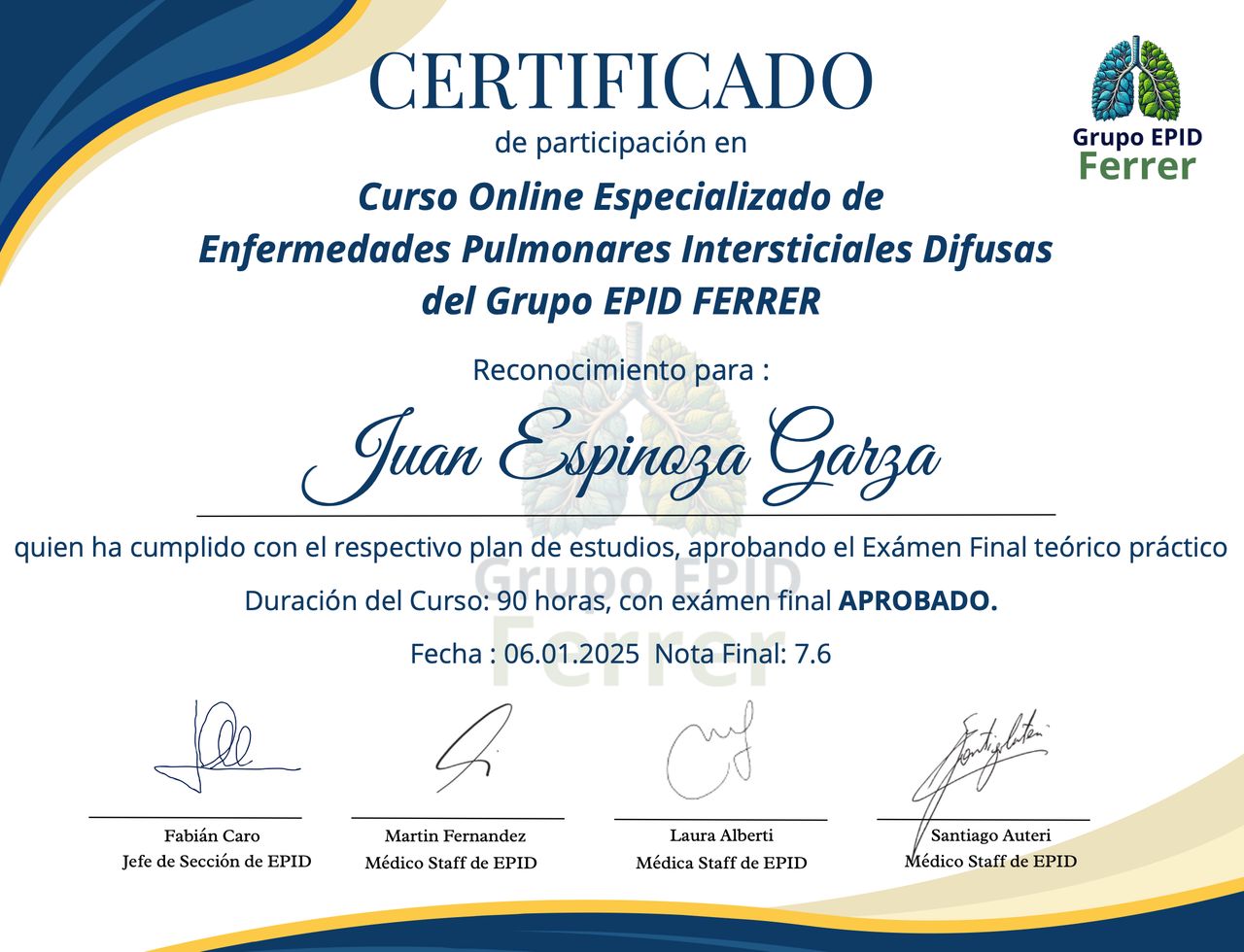 Me especializo en la atención y tratamiento de enfermedades del Tórax, Pulmón, Pleura y Mediastino, con un diverso grupo de enfermedades como, ASMA, EPOC, Apnea del Sueño, Neumonías, COVID-19, Fibrosis Pulmonar. Cáncer de Pulmón, Derrame pleural, Hipertensión Pulmonar, etc.