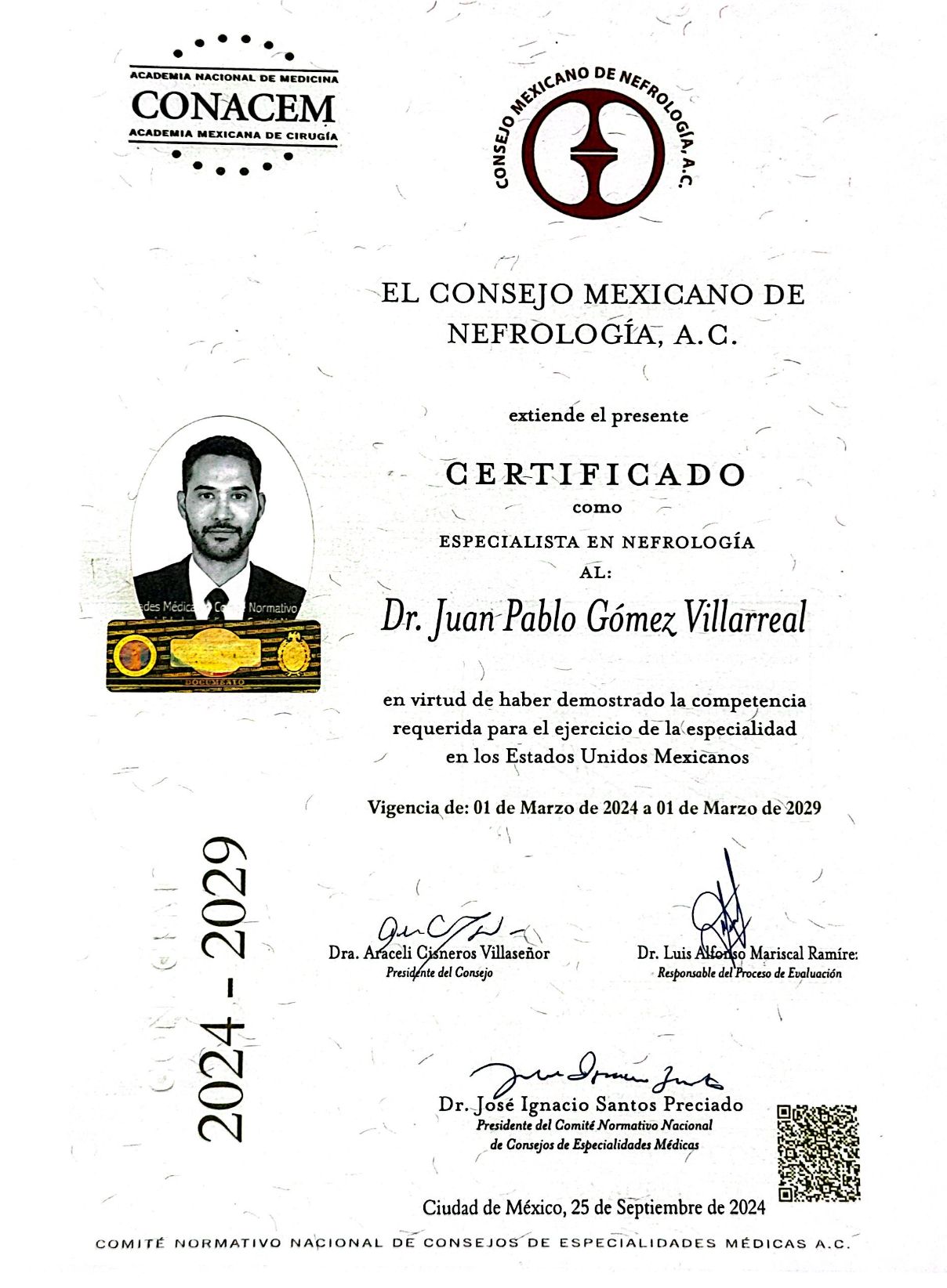 Cuento con experiencia en el manejo integral de enfermedades renales agudas y crónicas, así como en hipertensión, alteraciones electrolíticas y complicaciones metabólicas. Combino la atención clínica con la docencia y la investigación.