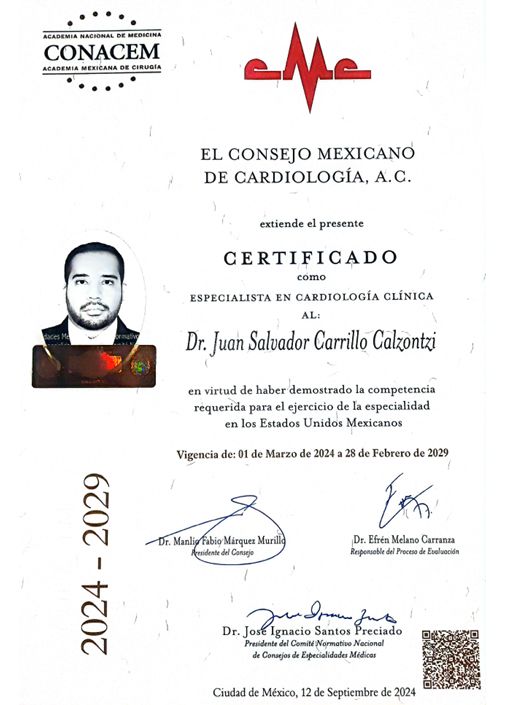 Soy el Dr. Salvador Carrillo, cardiólogo clínico con profunda vocación por el cuidado del corazón y la salud integral de los pacientes, mi pasión por la cardiología va más allá del diagnóstico, busco ofrecer una atención cálida, humana y personalizada, basada en la evidencia médica más actual.