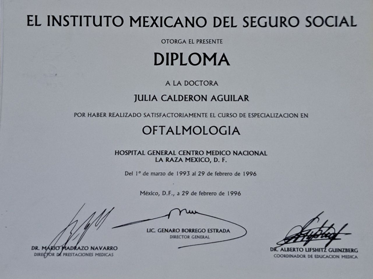 Buenos días, soy médico oftalmólogo general, egresada del Hospital General Centro Medico La Raza, UNAM.