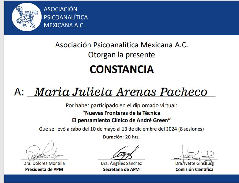 Soy psicóloga y actualmente curso la Maestría en Psicología Clínica y Psicoterapia. Atiendo a niños, adolescentes y adultos desde un enfoque psicoanalítico, siempre con un profundo respeto por la historia y el ritmo de cada persona.