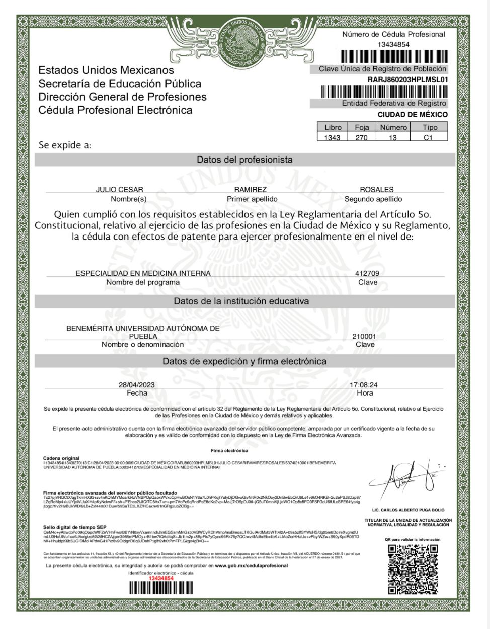 No. de cédula: 13434854 7393311