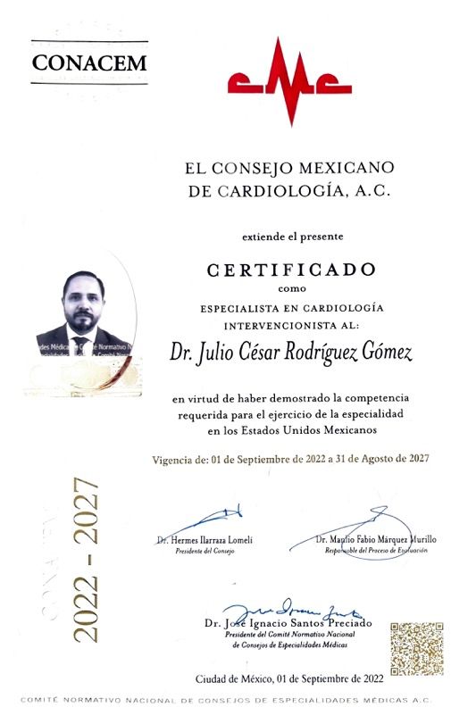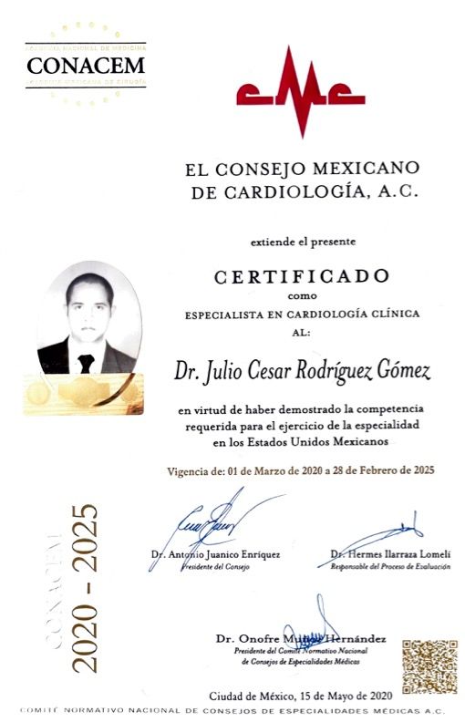 Soy el Dr. Julio César Rodríguez Gómez, cardiólogo intervencionista con más de 15 años de experiencia en Guadalajara.